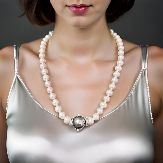 Akoya & Tahitian Pearl Necklace with Diamond 17" 14k W Gold Certified $8,975 402675