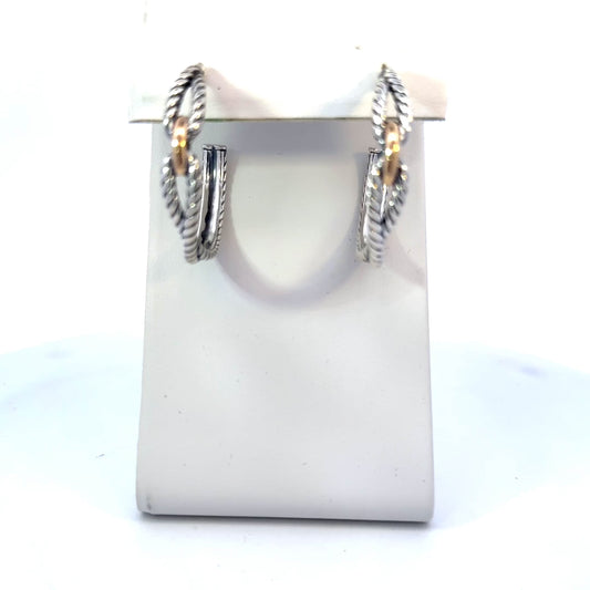 David Yurman Large Hoop Earrings 18 KT Gold + Silver Estate DY560