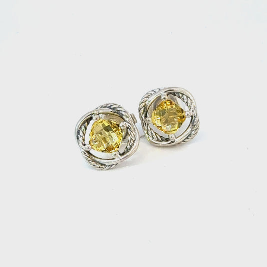 David Yurman Yellow Citrine Infinity Earrings Sterling Silver Estate DY700