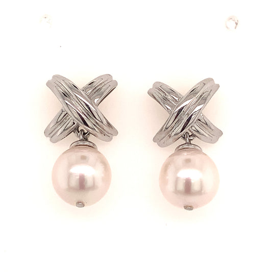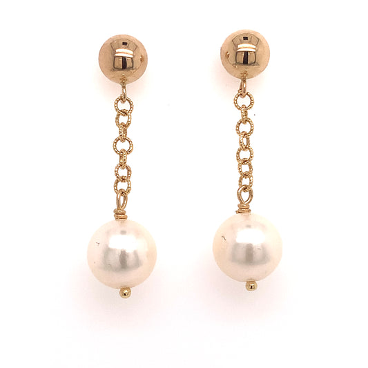 Akoya Pearl Dangle Earrings 14k Gold 8.25 mm 0.75" Certified $1,290 112992