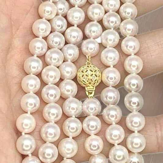 Diamond Akoya Pearl Necklace 14k Gold 8 mm 36 in Certified $9,750 010930