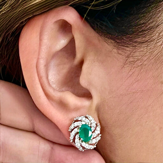 Diamond Emerald Earrings 14k White Gold 2.17 TCW Certified $5,950 018695