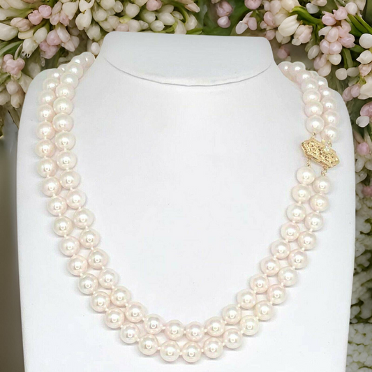 Diamond Akoya Pearl Necklace 8 mm 14k Gold 17 in 2-Strand Certified $9,750 010933
