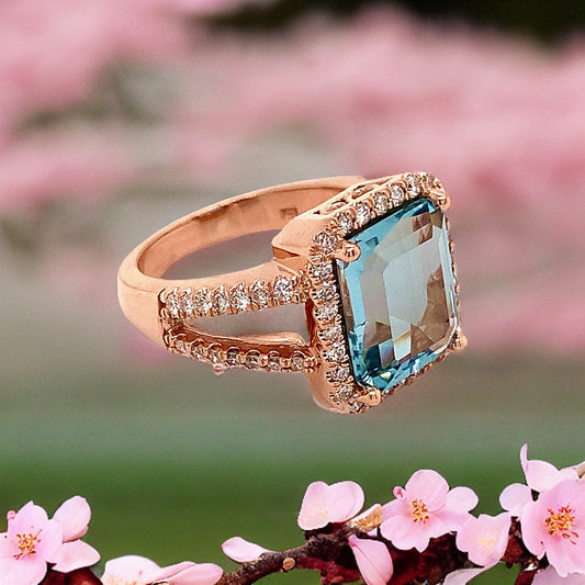Diamond Aquamarine Ring Size 6.5 14k Gold 6.25 TCW Certified $6,950 120672