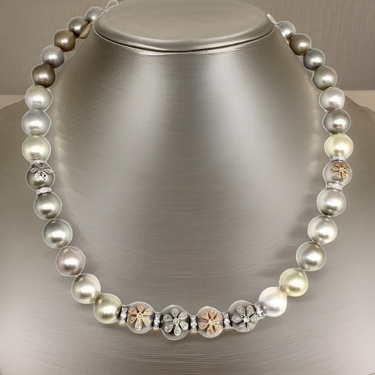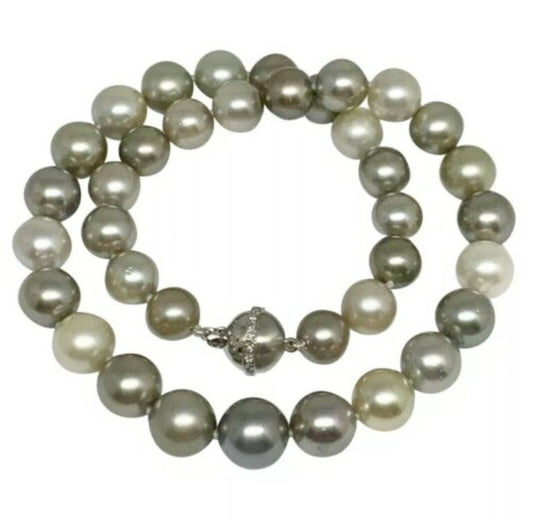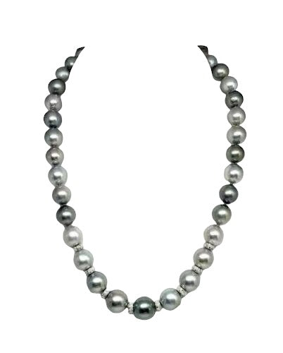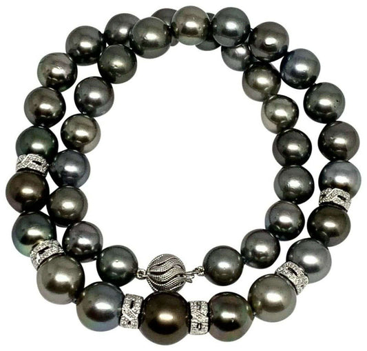 Diamond Tahitian Pearl Necklace 17.25" 12.9 mm 18k Gold 17.25" Certified $12,500 821383