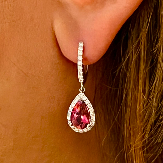 Diamond Rubellite Tourmaline Drop Earrings 18k W Gold 2.93 TCW Certified $5,950 210764