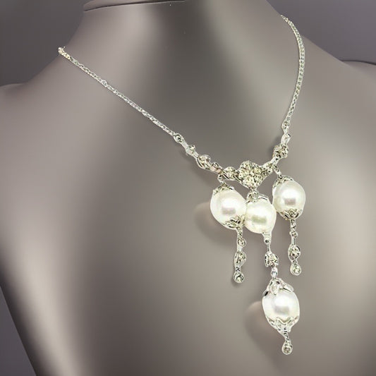 Diamond Sapphire FW Pearl Necklace 17.5 In Italy Certified $3,950 017807