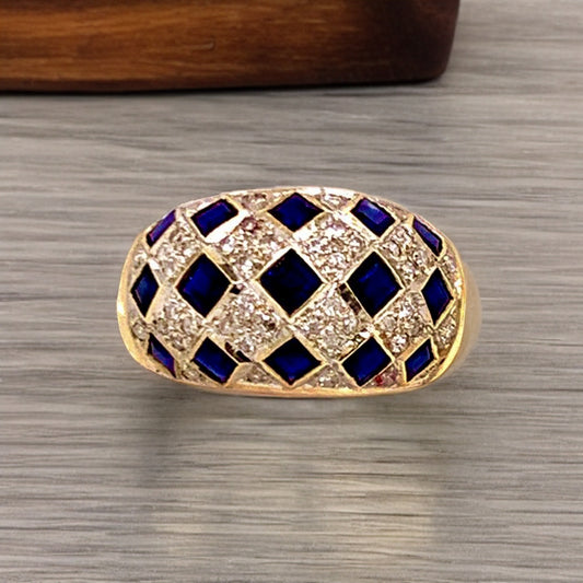 Diamond Sapphire Ring 14k Gold 2.14 TCW Checkerboard Certified $2,850 606974