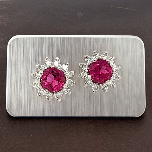 Diamond Ruby Stud Earrings 14k White Gold 1.87 TCW Certified $4,550 018668