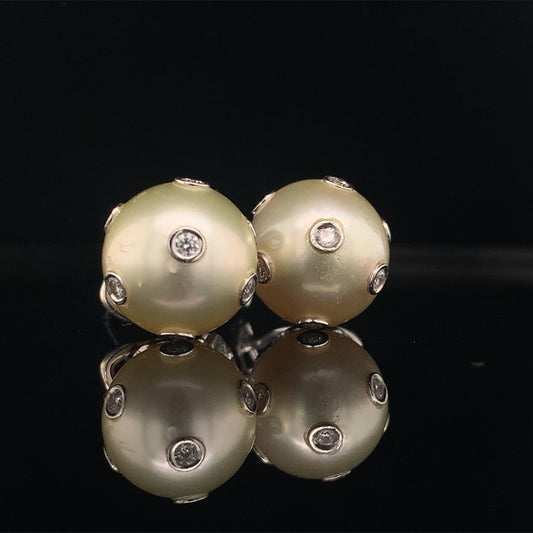 Diamond South Sea Pearl Earring 14 KT Certified $4,995 015793