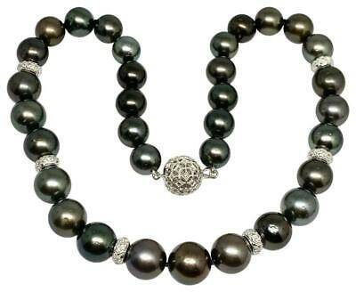 Diamond Tahitian Pearl 18k Gold Necklace 13.25 mm 17" Certified $24,500 914433