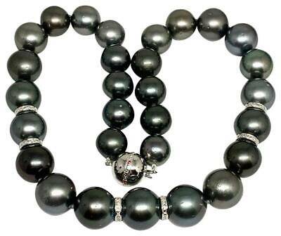 Diamond Tahitian Pearl Necklace 14k Gold 16.7 mm 19.5" Certified $19,470 915543