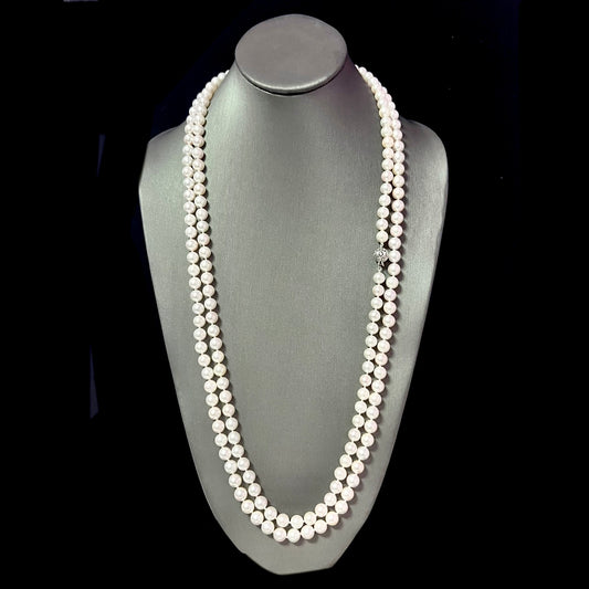 Natural Akoya Pearl Diamond Necklace 60.5" 18k White Gold 8 mm Certified $7,950 307925