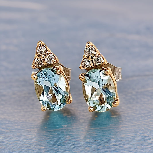 Natural Aquamarine Diamond Earrings 14k Y Gold 1.85 TCW Certified $2,950 210758