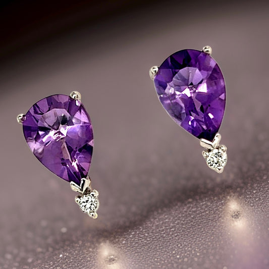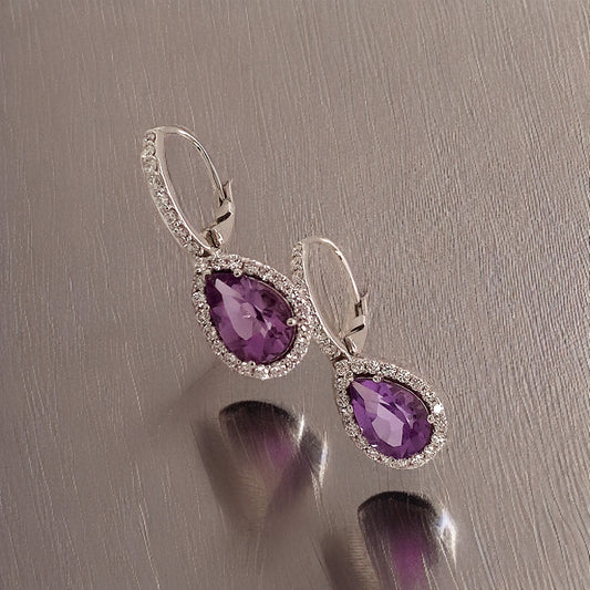 Natural Amethyst Diamond Earrings 14k W Gold 3.62 TCW Certified $2,950 210753