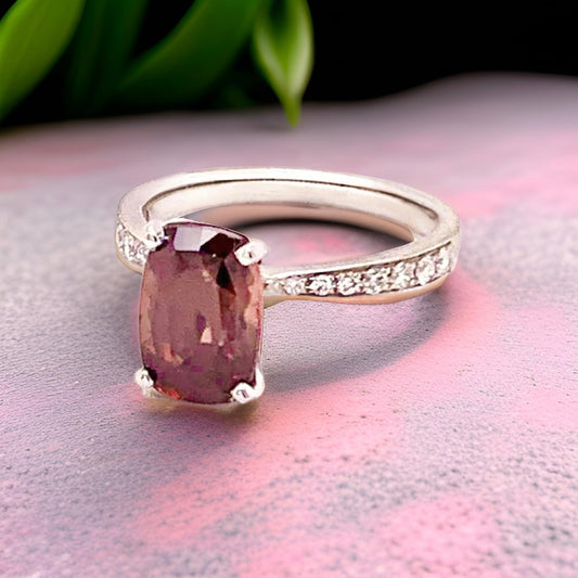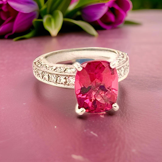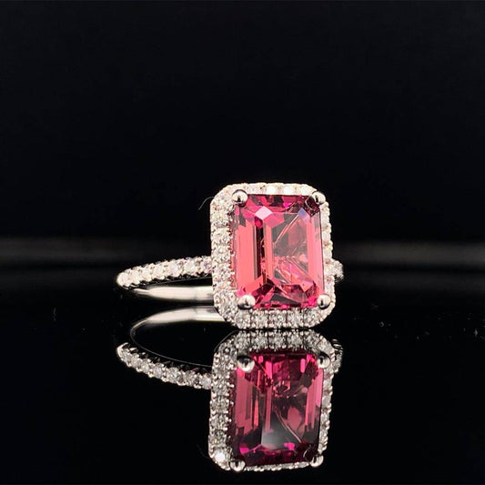 Diamond Tourmaline Rubellite Ring 3 Platinum 3.72 TCW Certified 910749