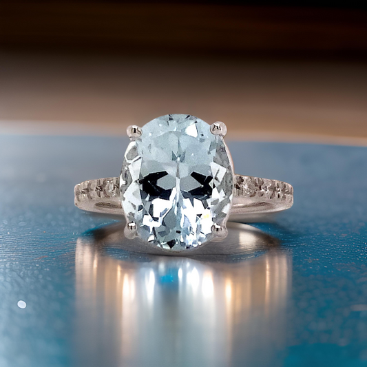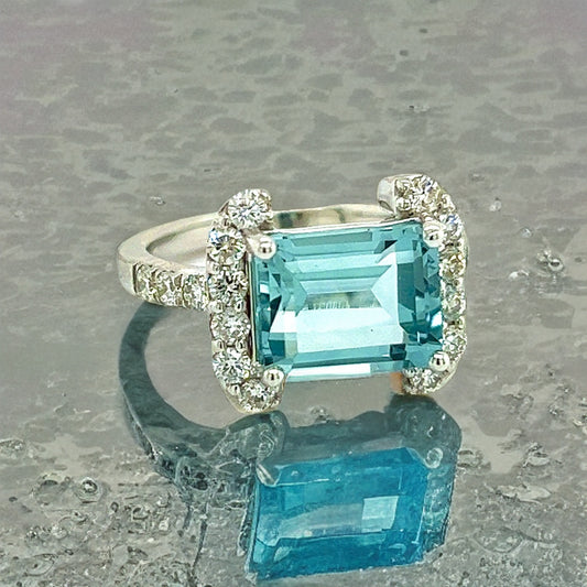 Natural Aquamarine Diamond Ring 6.5 14k white Gold 6.09 TCW Certified $4,690 217095