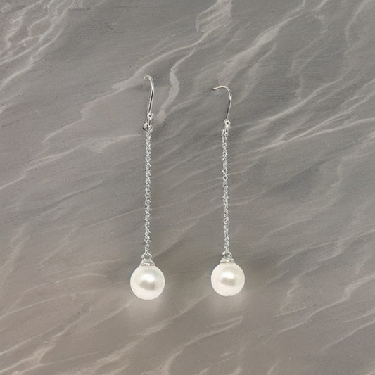 Fresh Water Pearl Dangle Earrings 14k White Gold Certified $799 018542