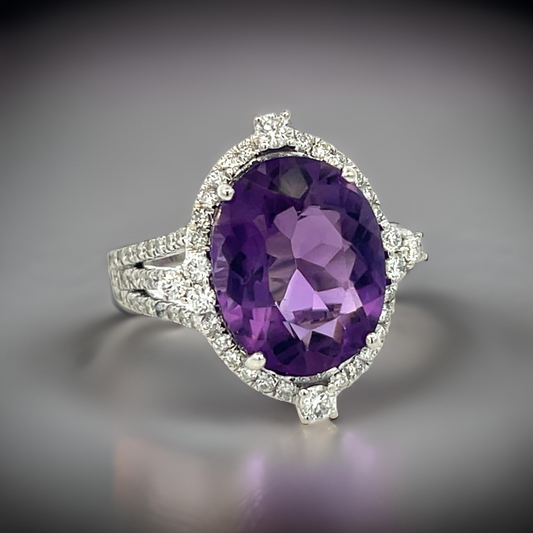 Natural Amethyst Diamond Ring 6.5 14k White Gold 7.67 TCW Certified $3,950 311006