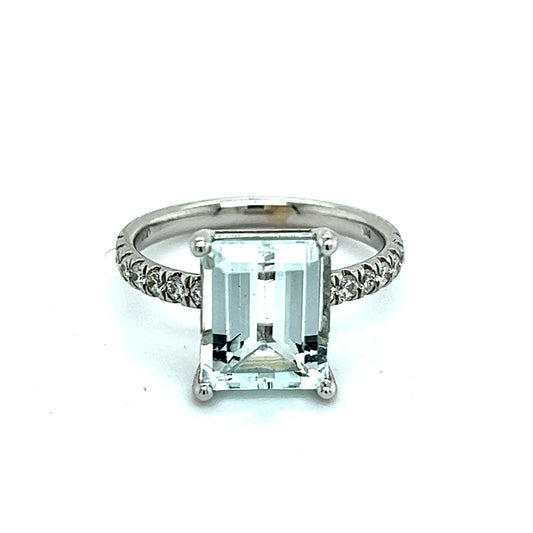 Natural Aquamarine Diamond Ring Size 6.5 14k W Gold 3.18 TCW Certified $4,975 217845