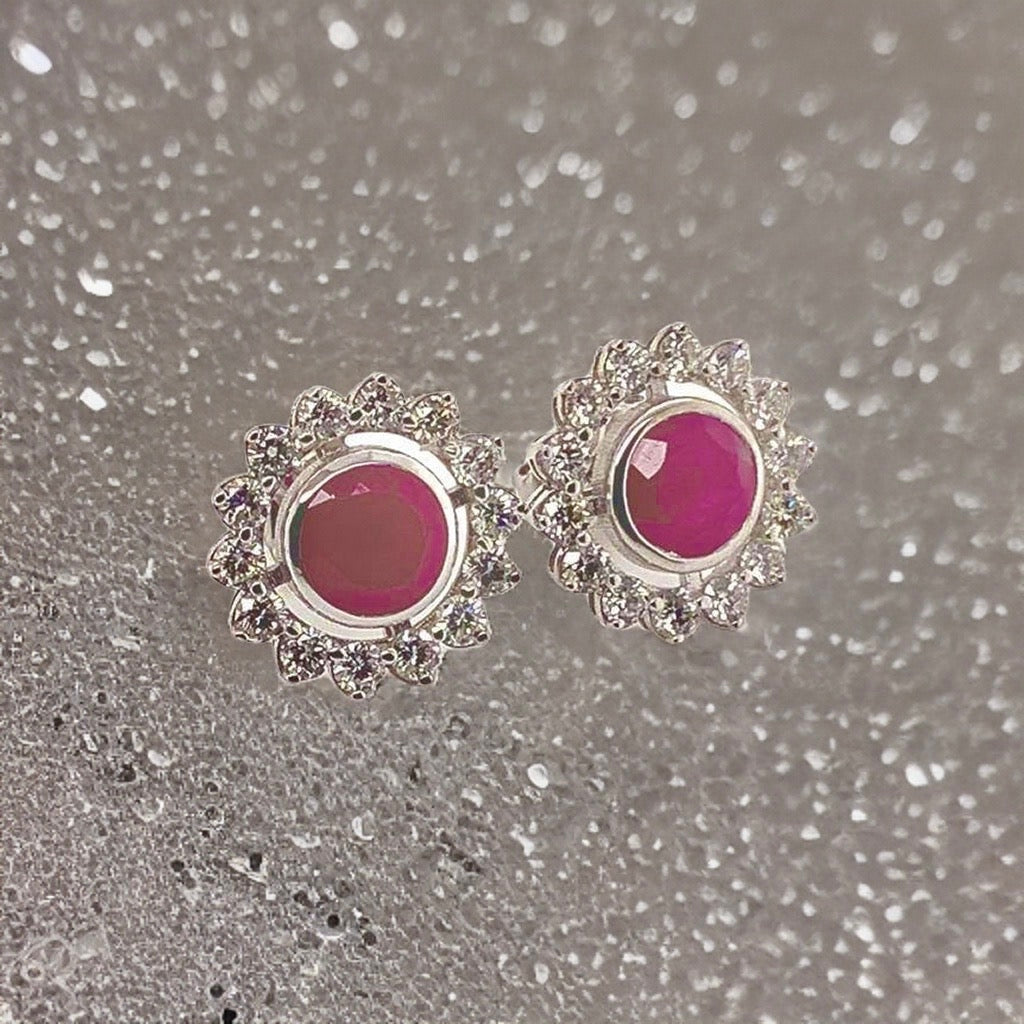 Natural Untreated Finely Faceted Quality Ruby and Diamond Earrings set in 14k White Gold