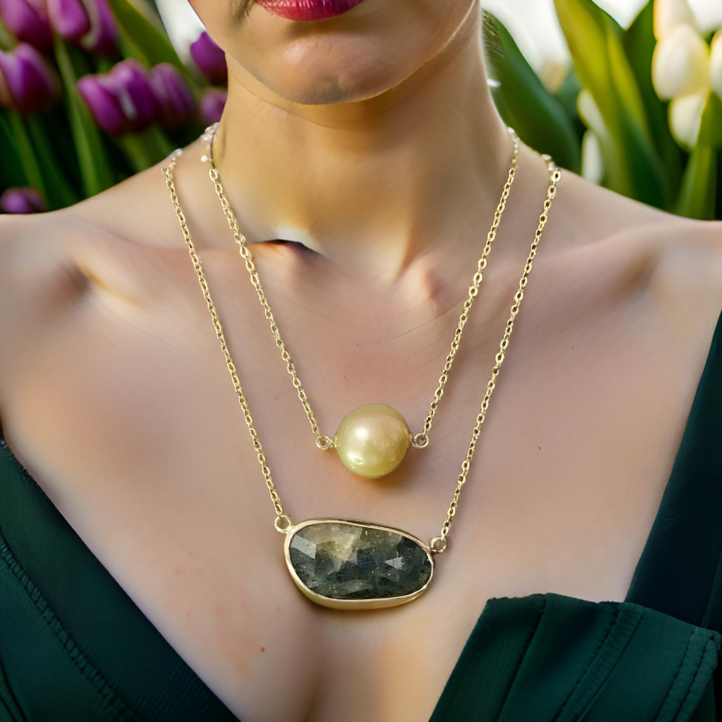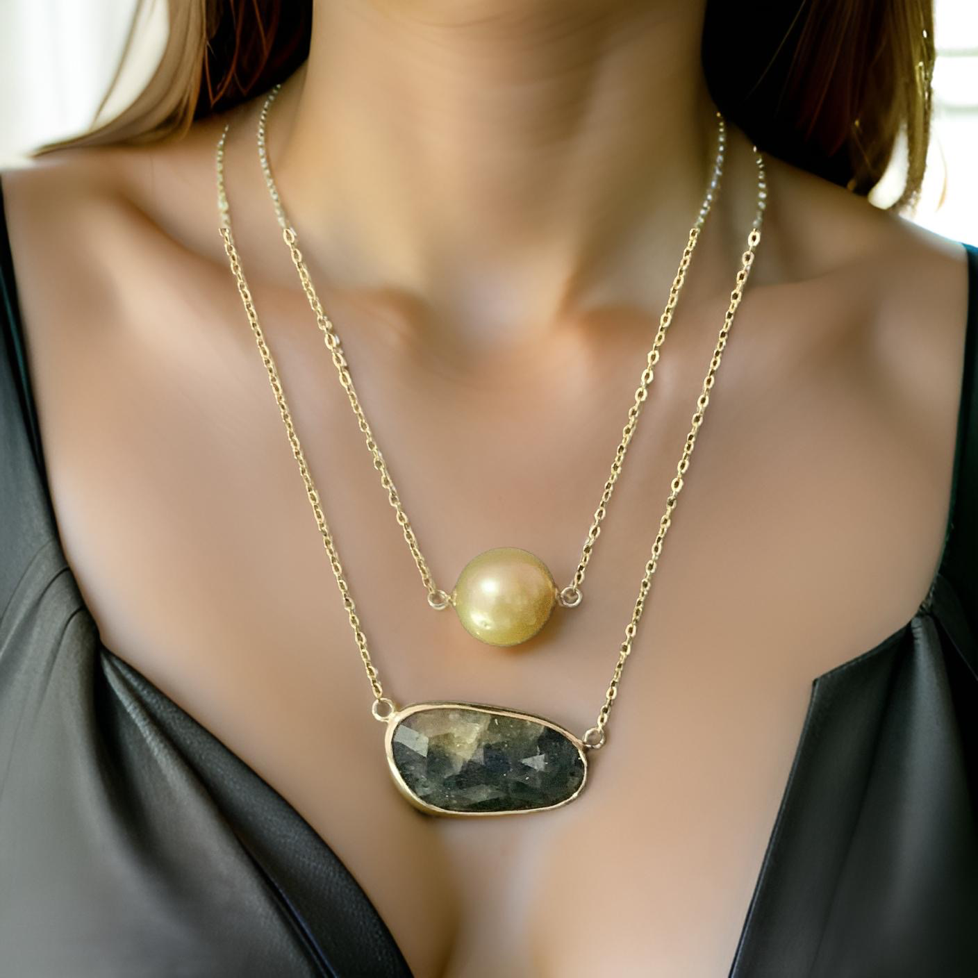 This Stunning Necklace is Adorned With 1 BEAUTIFUL Golden South Sea Saltwater Pearl.