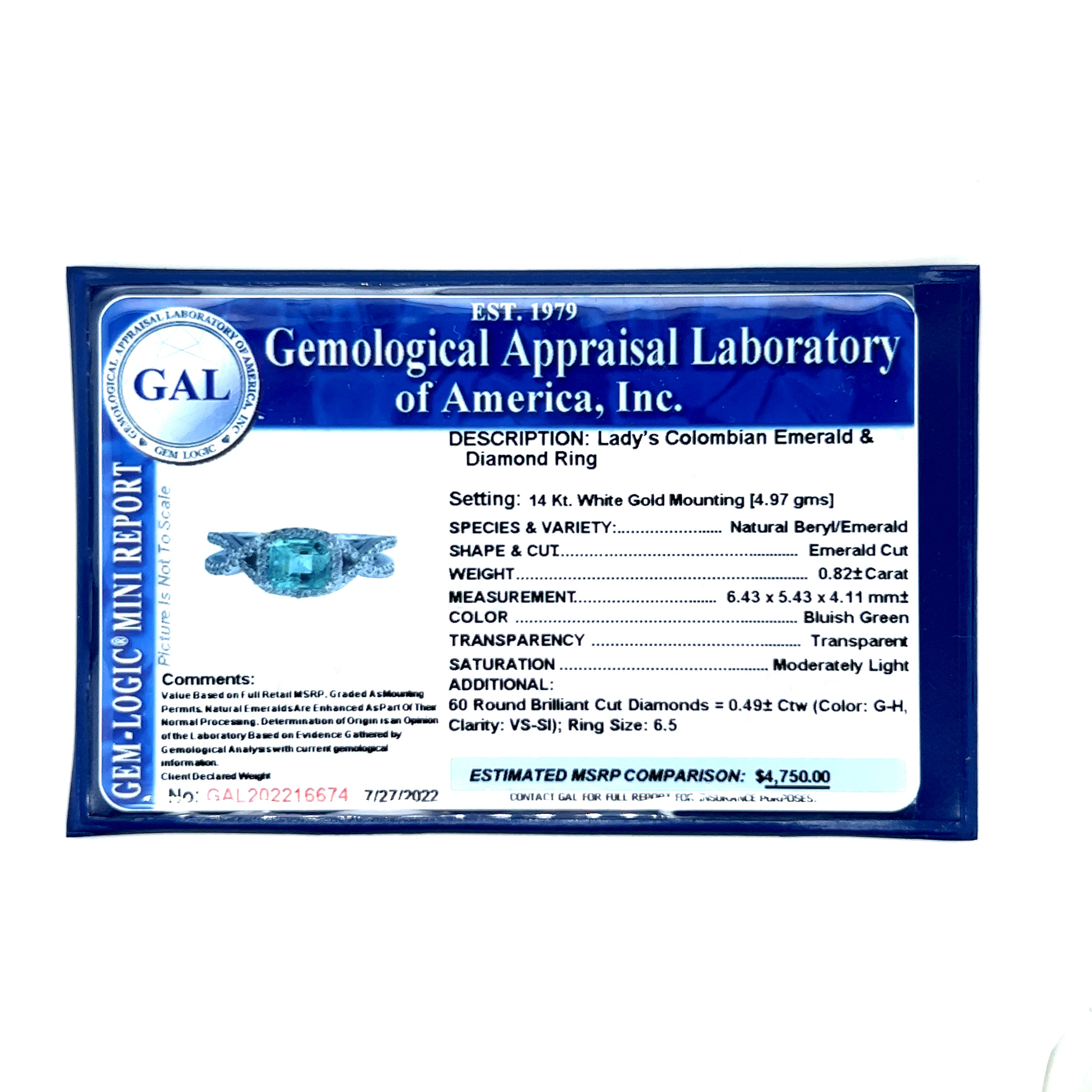 This Emerald ring has been Certified, Inspected, and Appraised by Gemological Appraisal Laboratory
