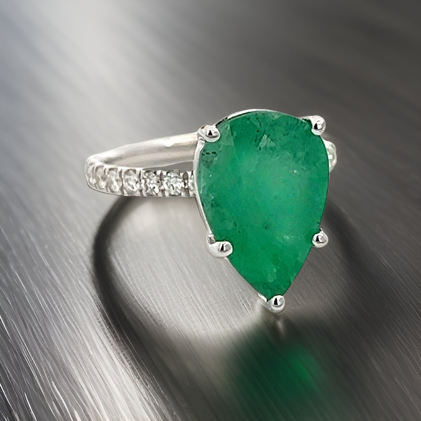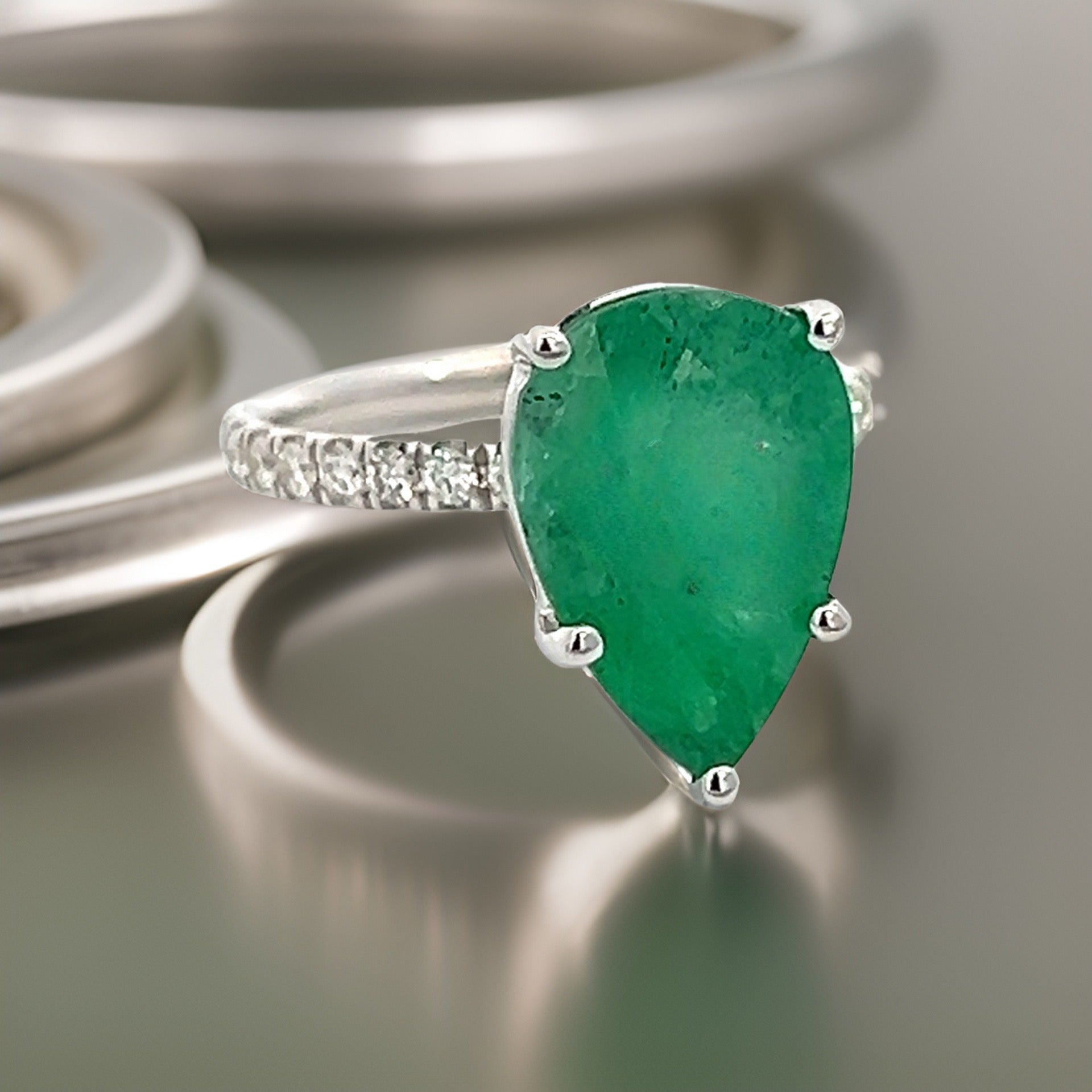 Stone: Natural Finely Faceted Quality Emerald, Diamond