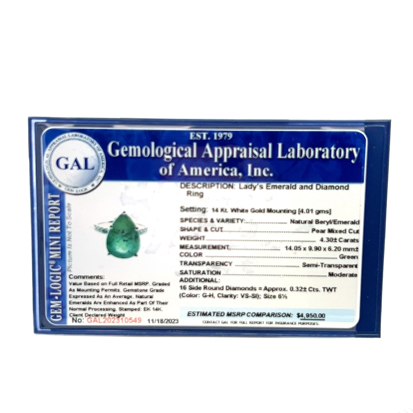 Natural Emerald and Diamond Ring 6.5 14k WG 4.62 TCW Certified $4,950 310549