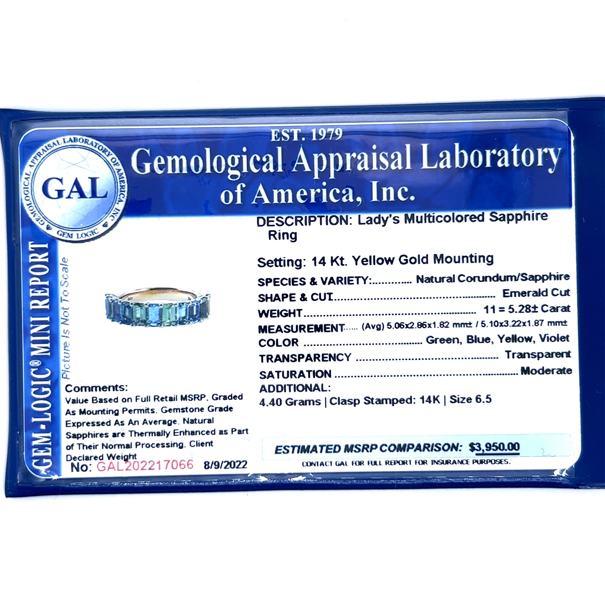 This Sapphire ring has been Certified, Inspected, and Appraised by Gemological Appraisal Laboratory