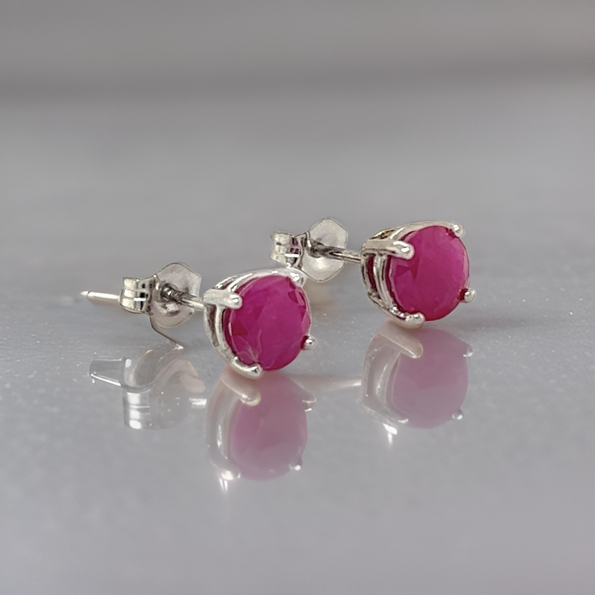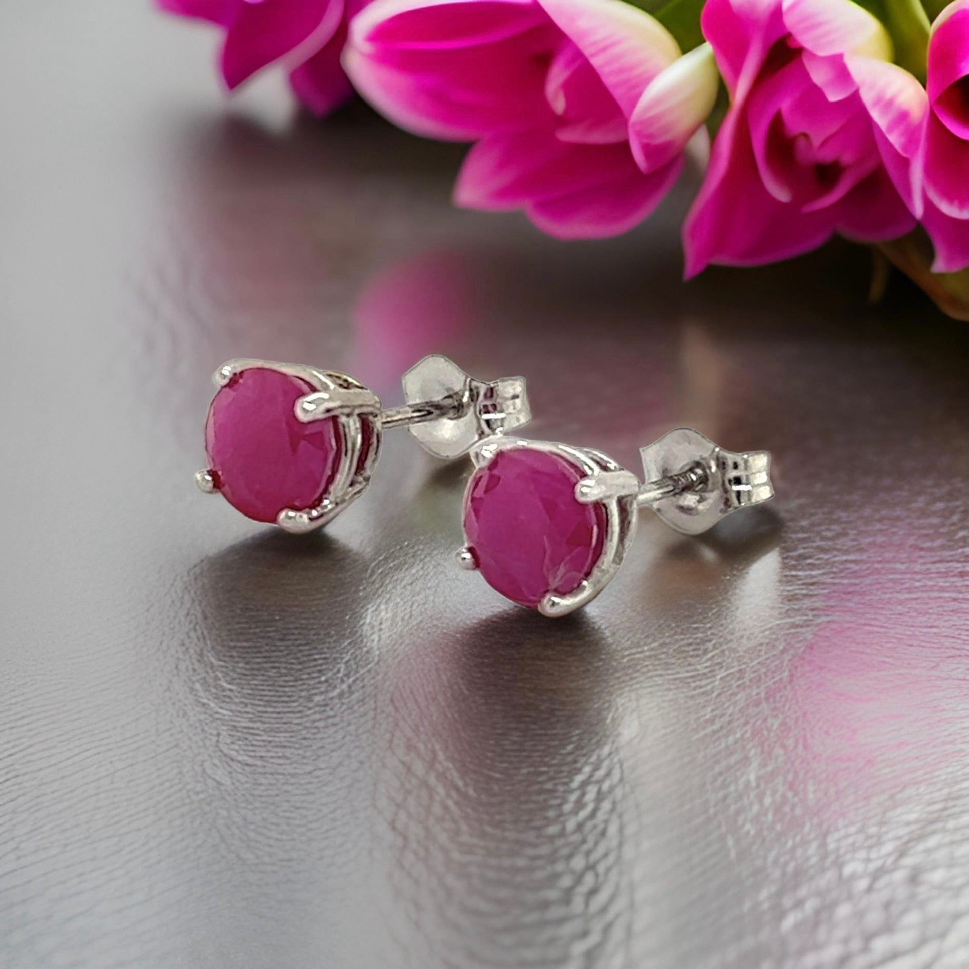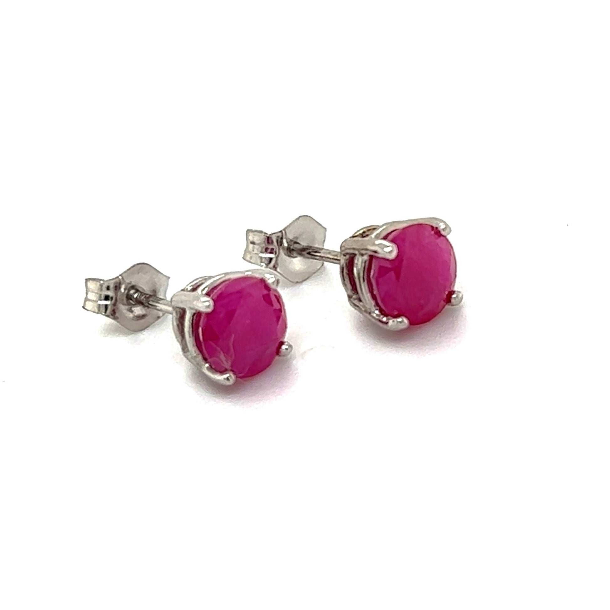 Featuring natural, finely faceted rubies with a total carat weight (TCW) of 1.91 carats, these studs showcase the vibrant red hue of the gemstones in a timeless, minimalist design.