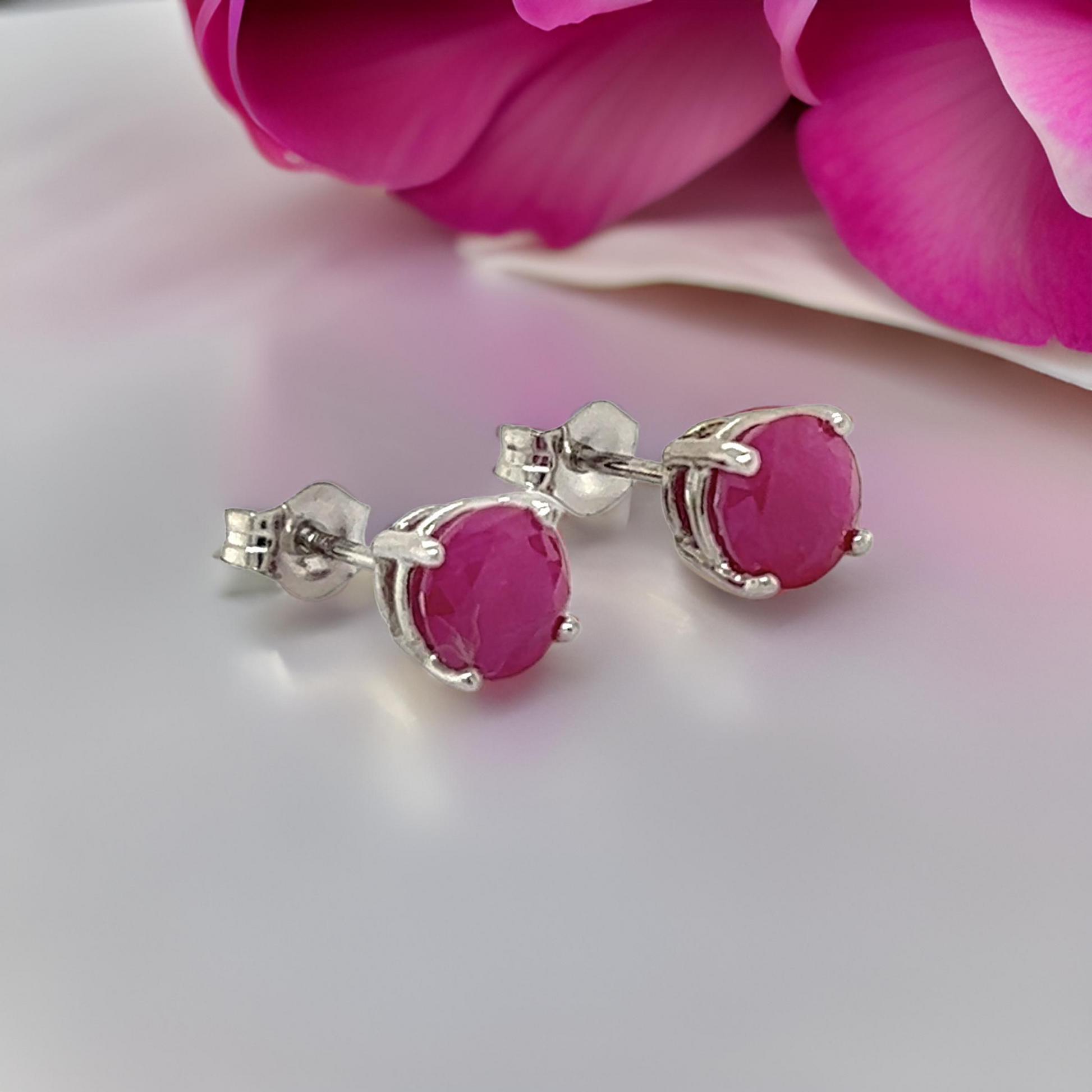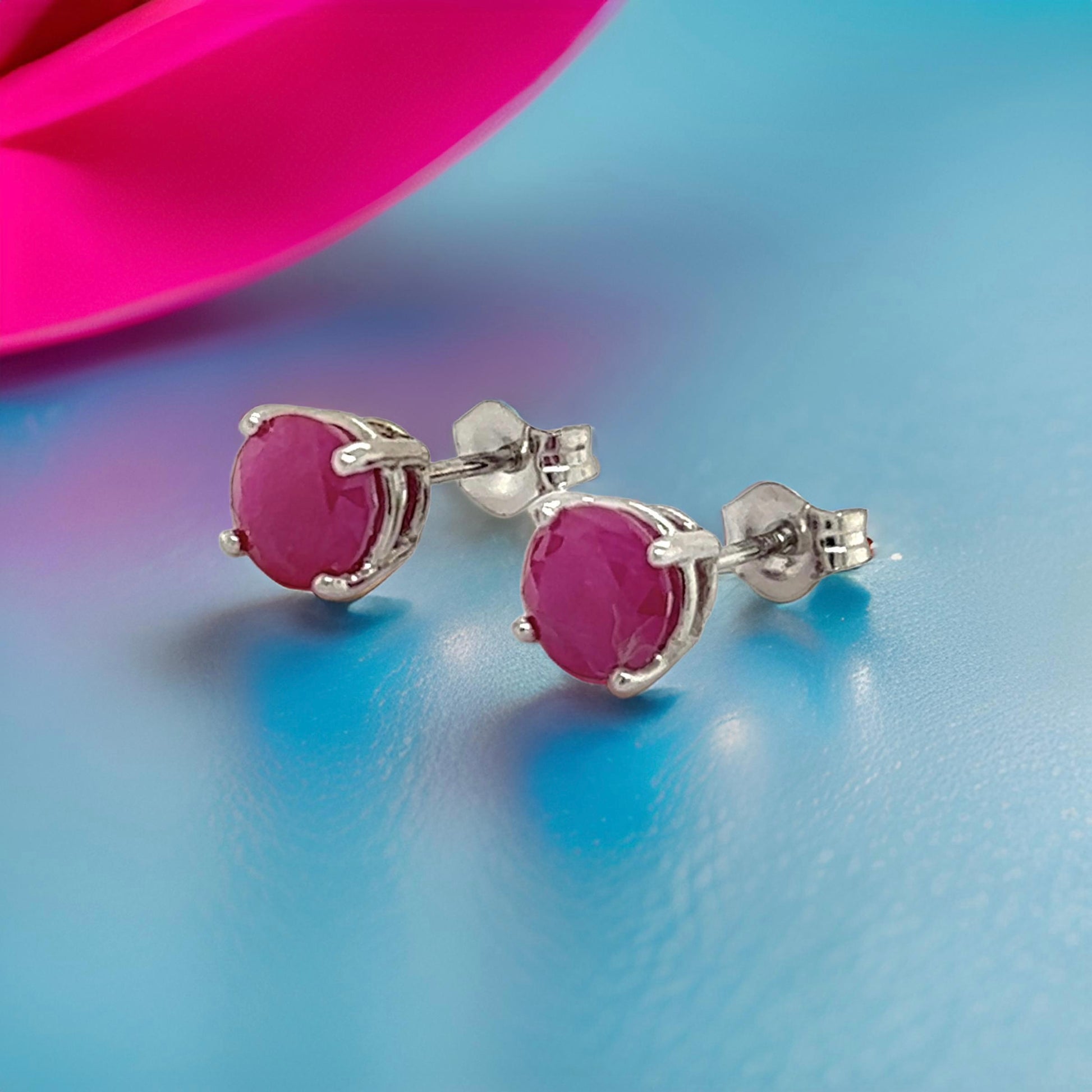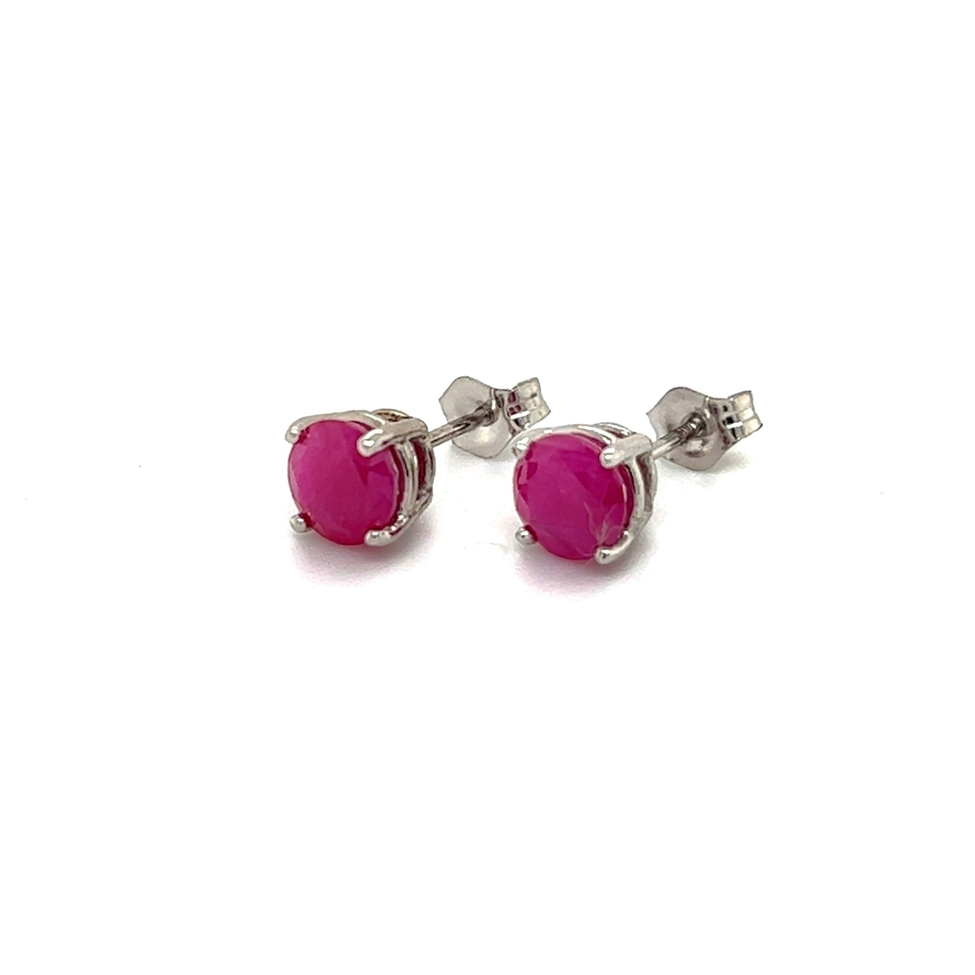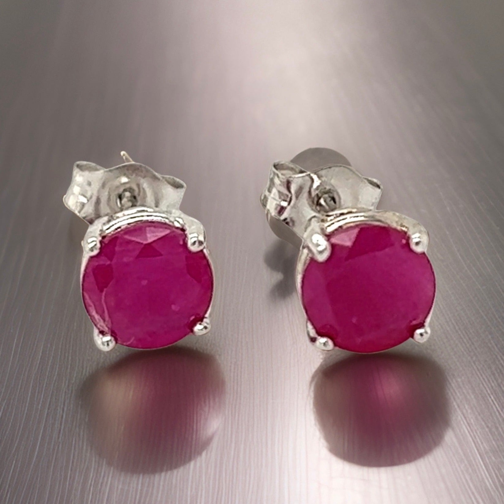 Featuring natural, finely faceted rubies with a total carat weight (TCW) of 1.91 carats, these studs showcase the vibrant red hue of the gemstones in a timeless, minimalist design.