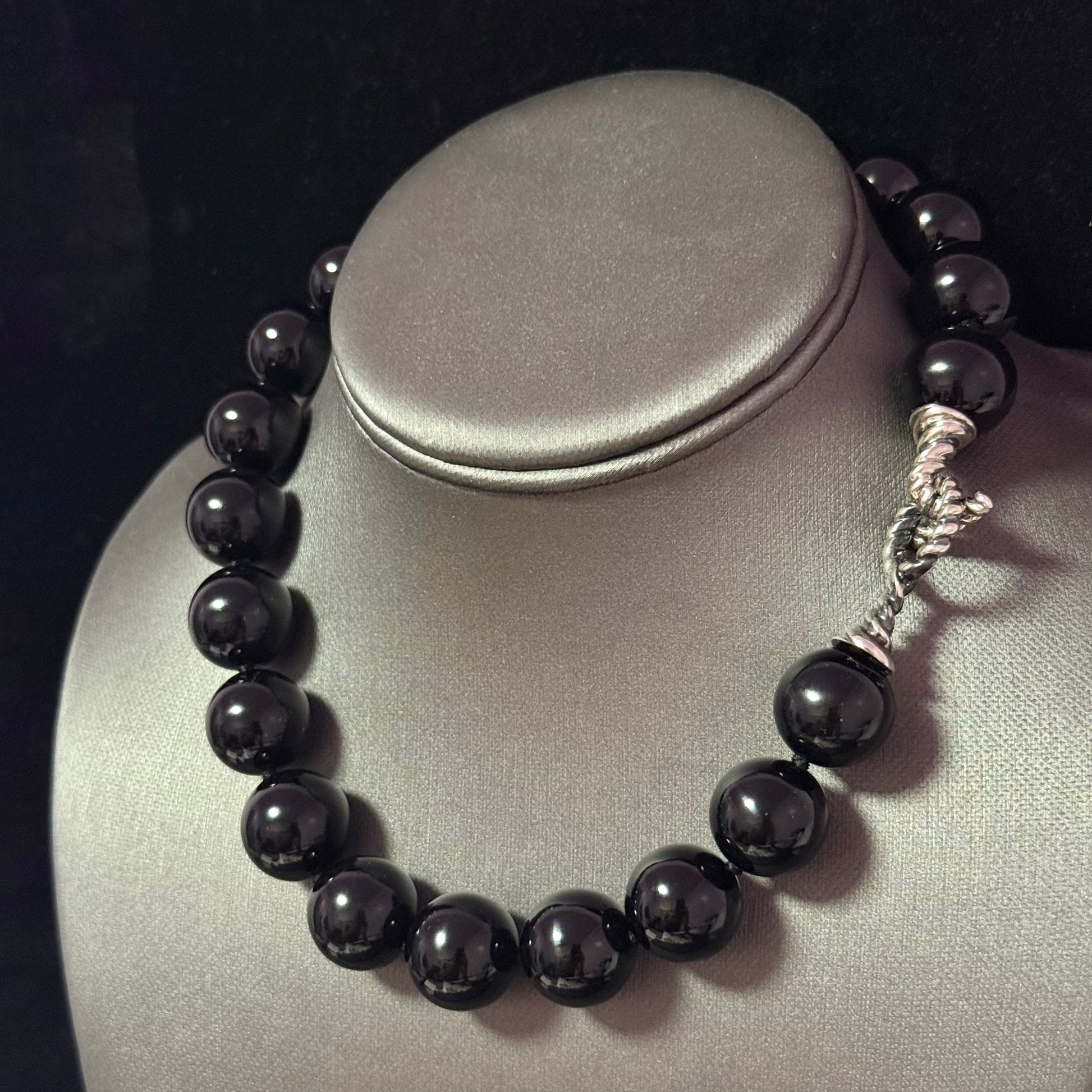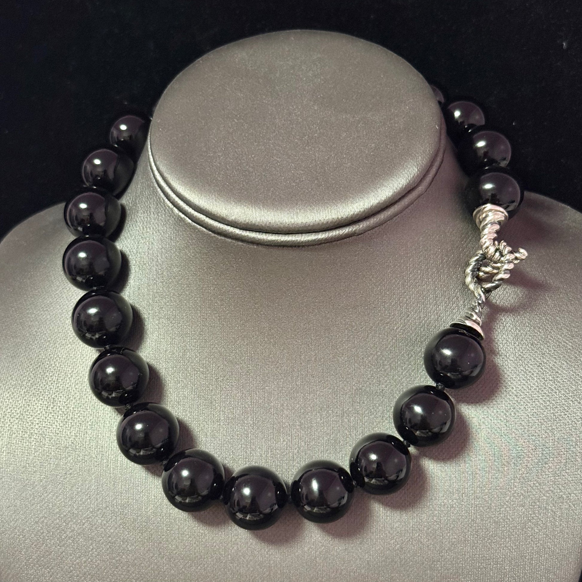 Authentic Tiffany & Co Onyx Beads Toggle Necklace 16" 16 mm Sterling Silver Estate TIF934