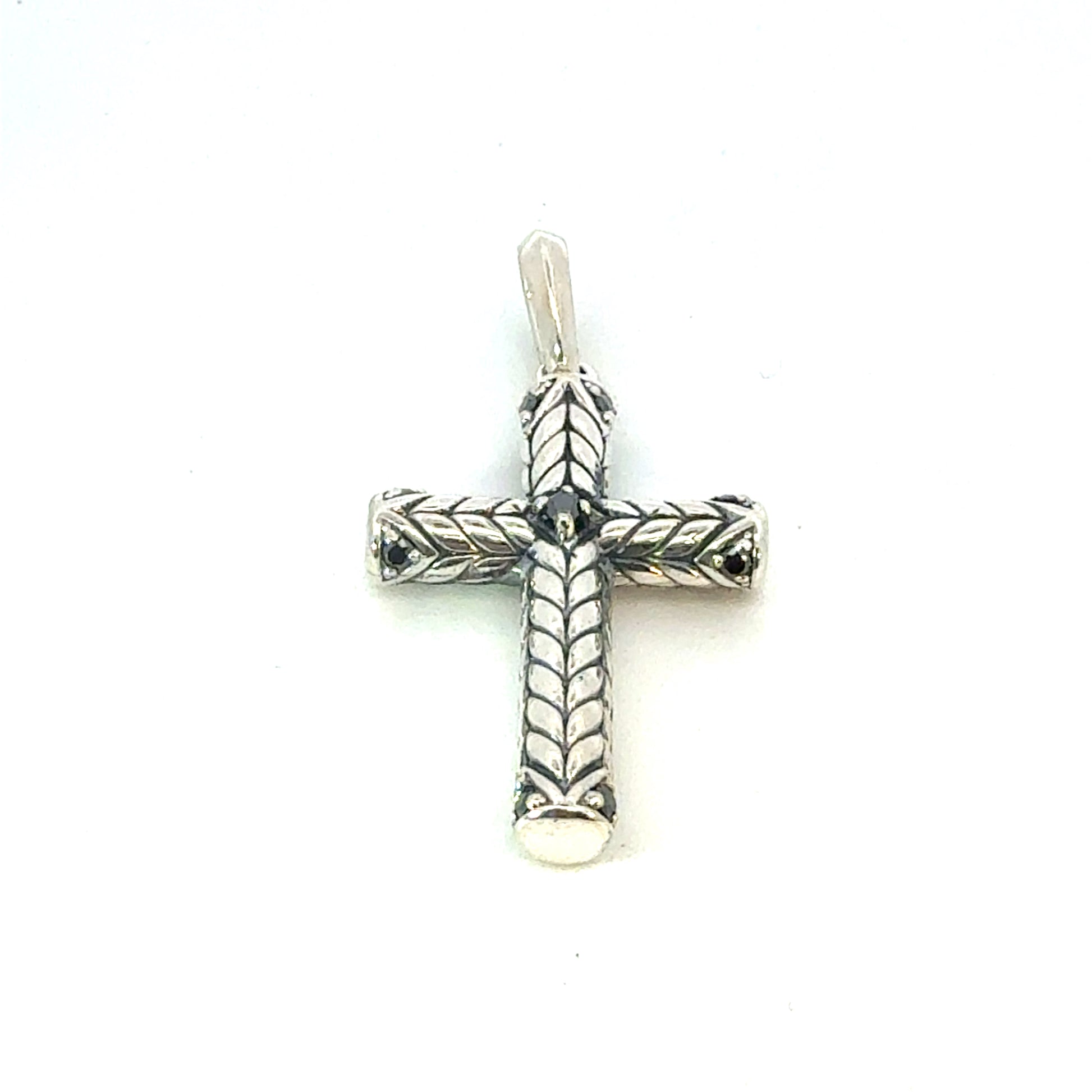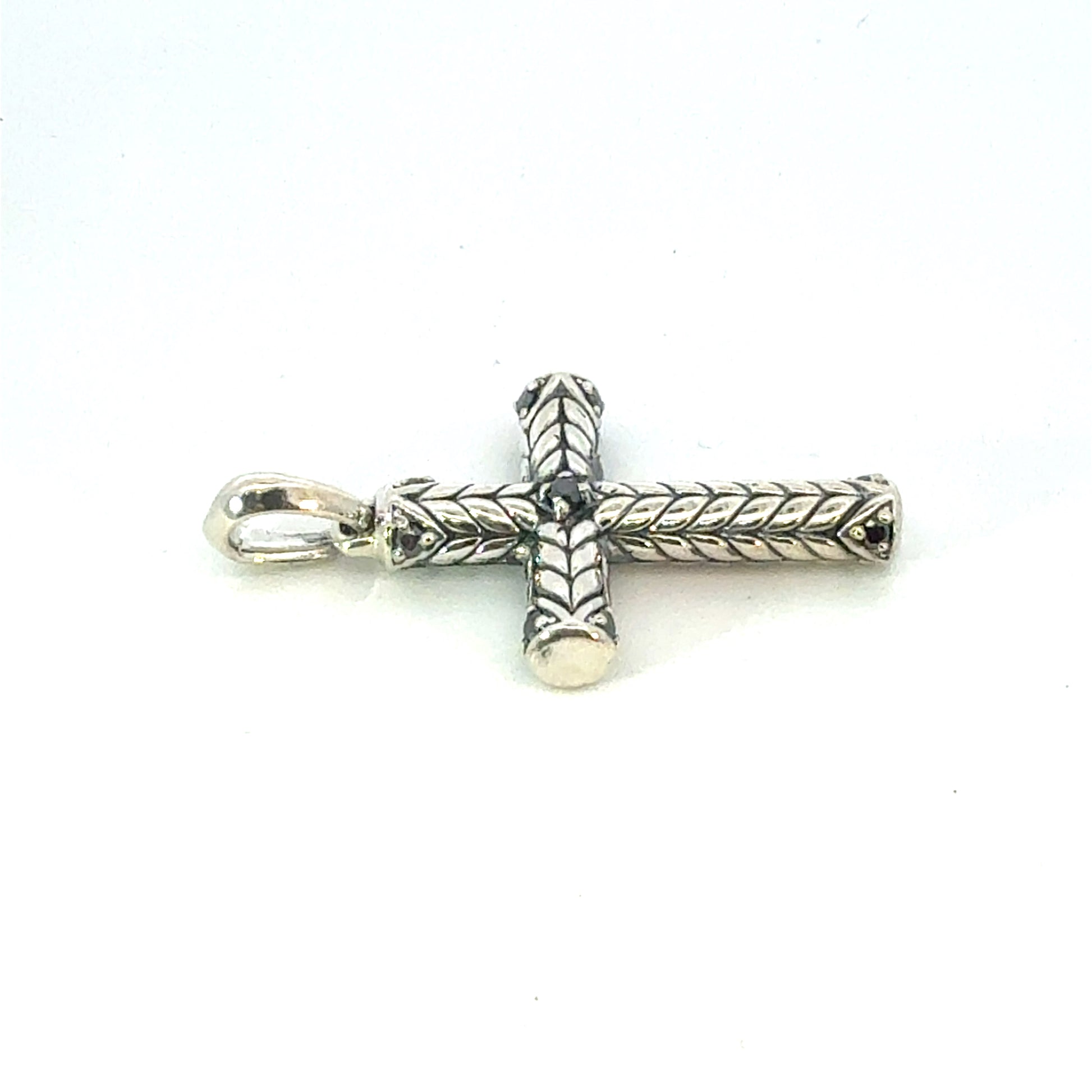Authentic David Yurman Black Diamond Cross Pendant Sterling Silver Estate DY656