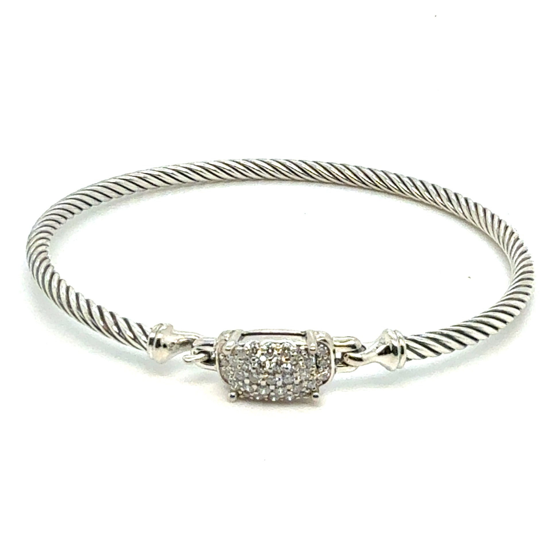 David Yurman Diamond Cuff Bracelet Size M Silver 3 mm Estate DY800