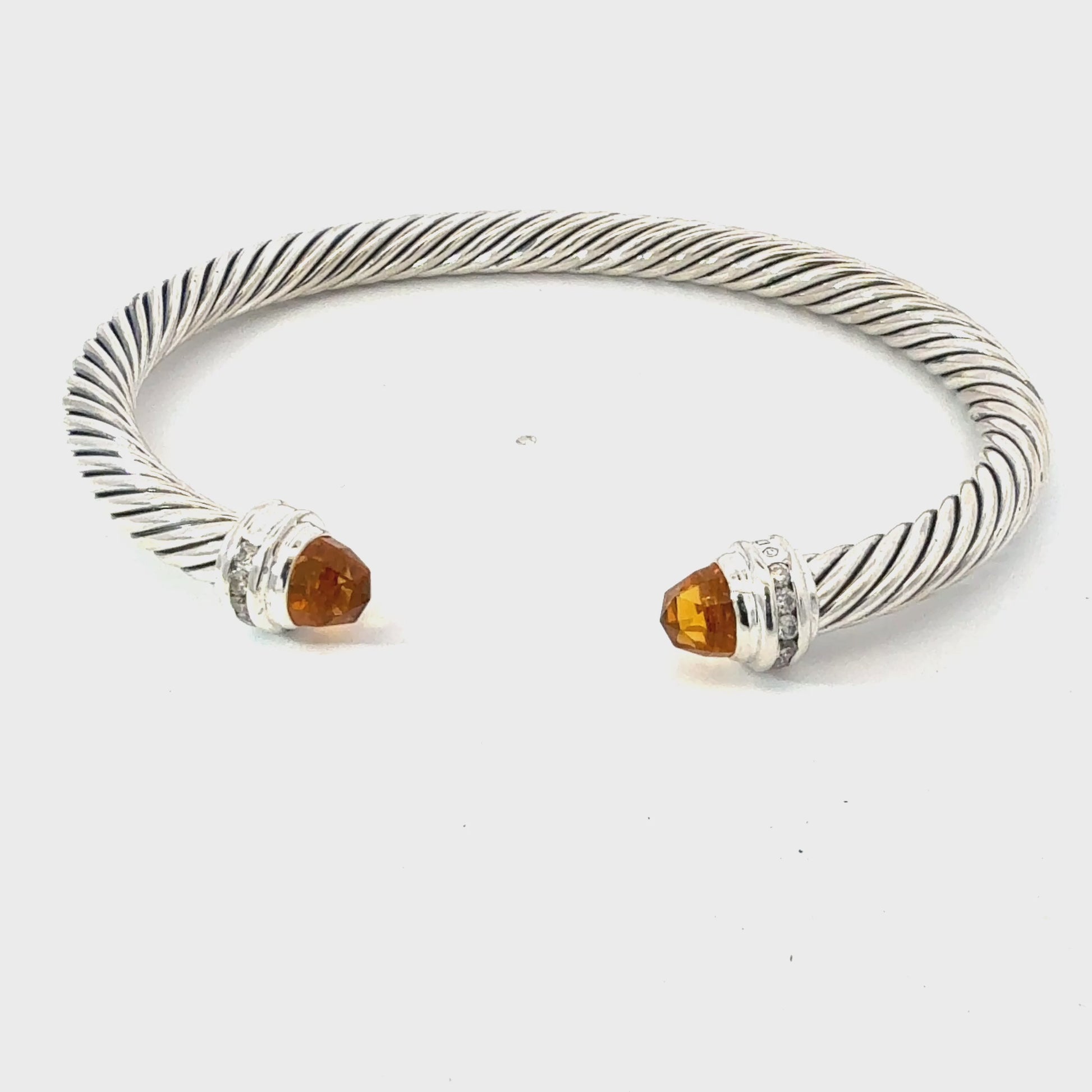 This elegant Authentic David Yurman cuff bracelet is made of Diamond, Citrine and sterling silver.