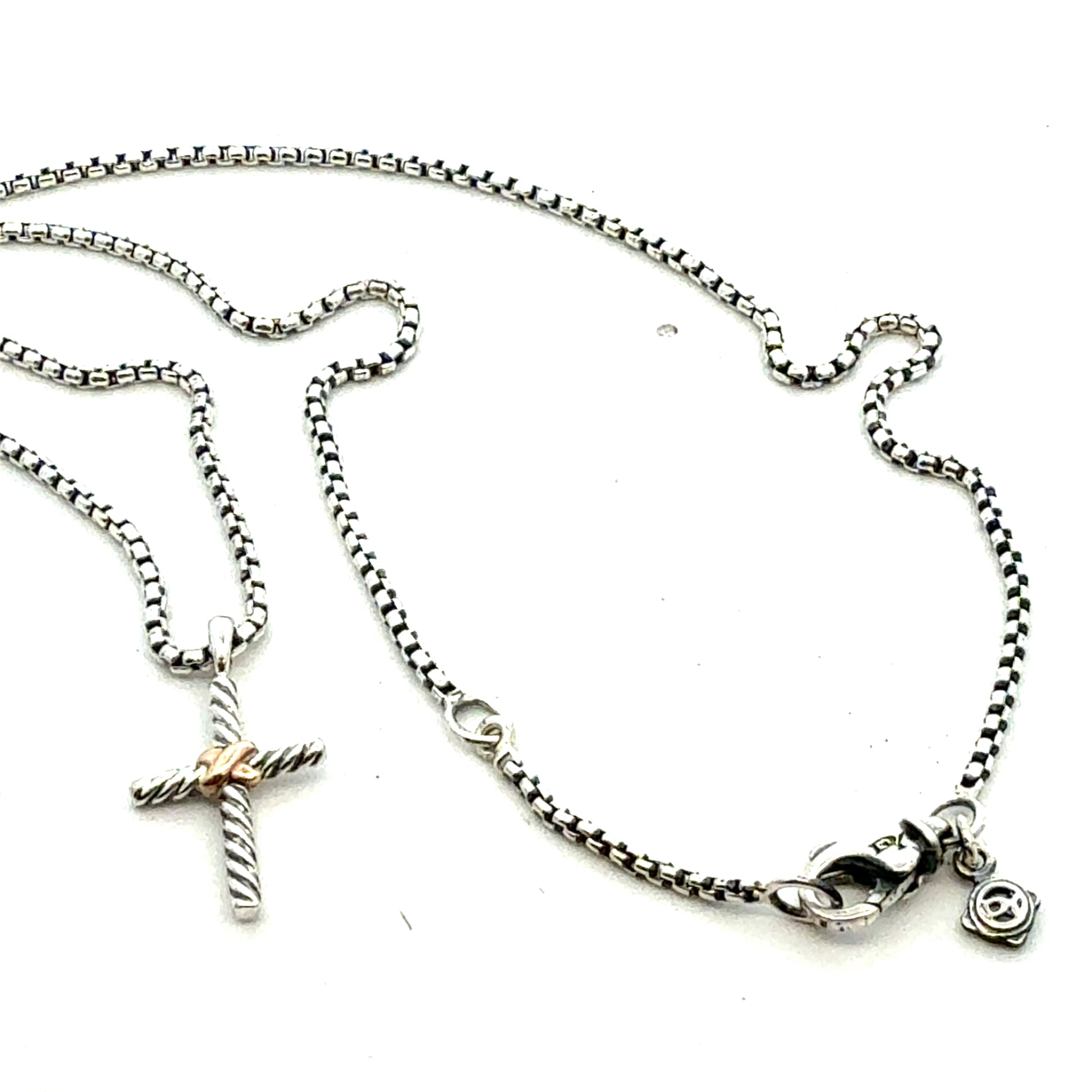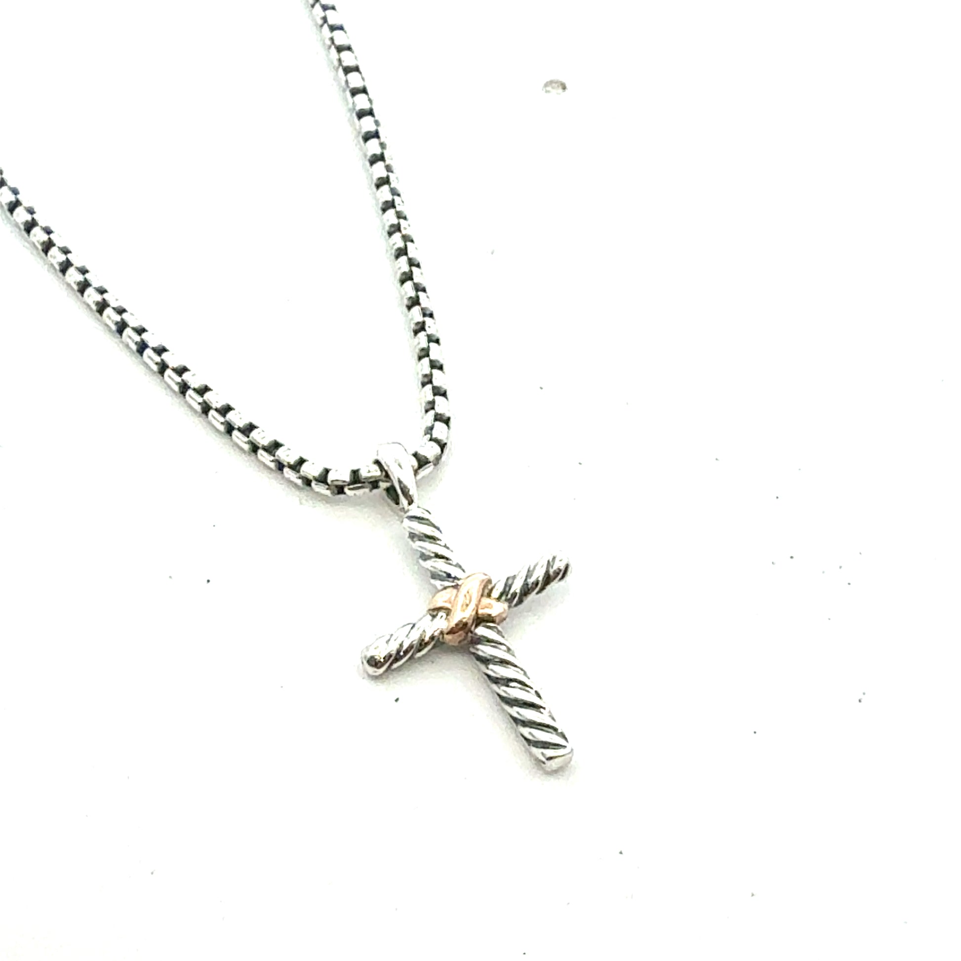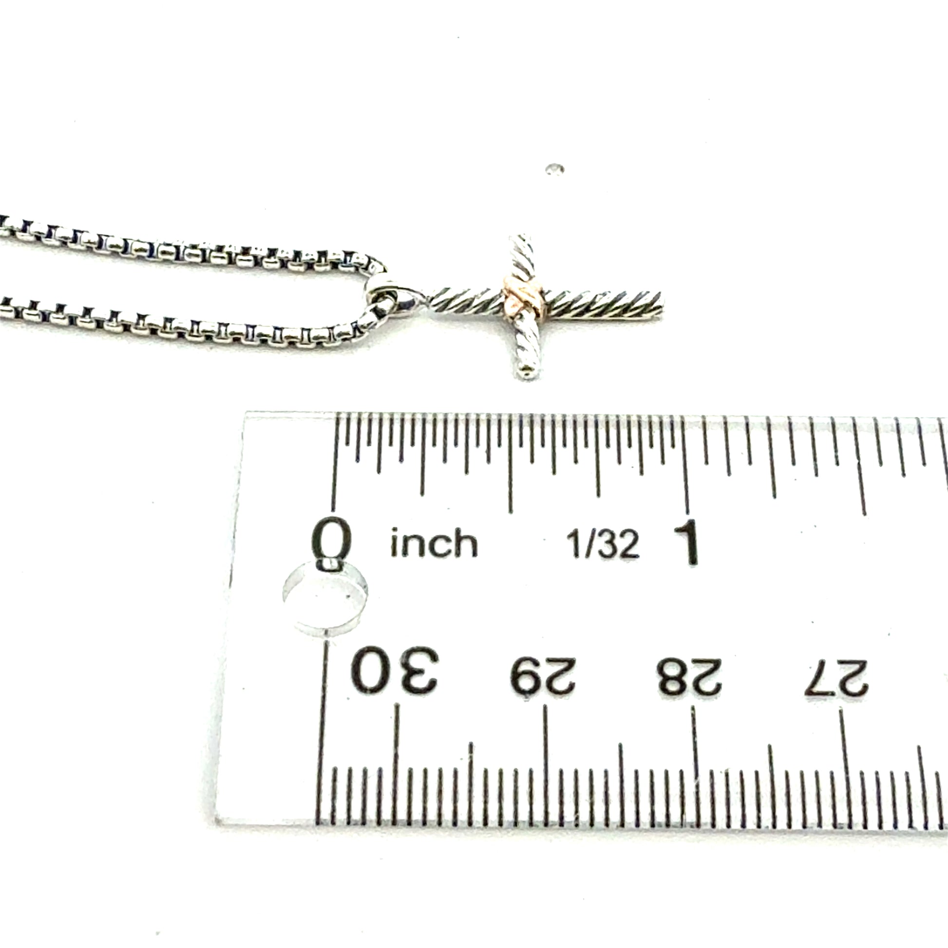 This elegant Authentic David Yurman cross pendant is made of sterling silver and 14k Yellow Gold.