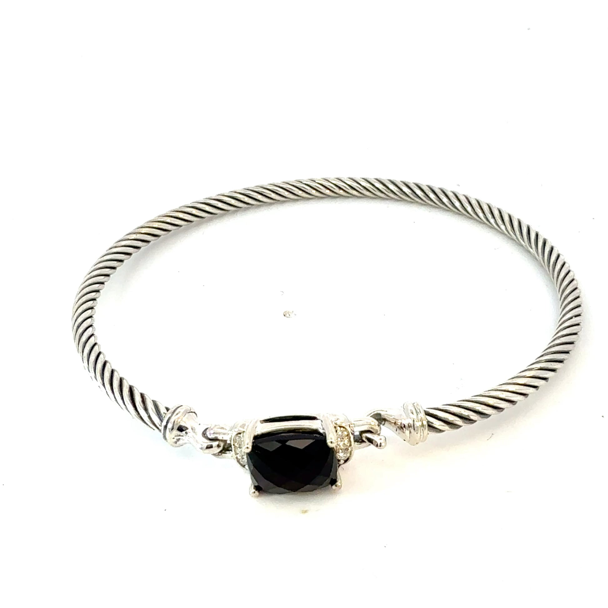 Authentic David Yurman Diamond Onyx Cuff Bracelet Size M 3 mm Silver Estate DY765