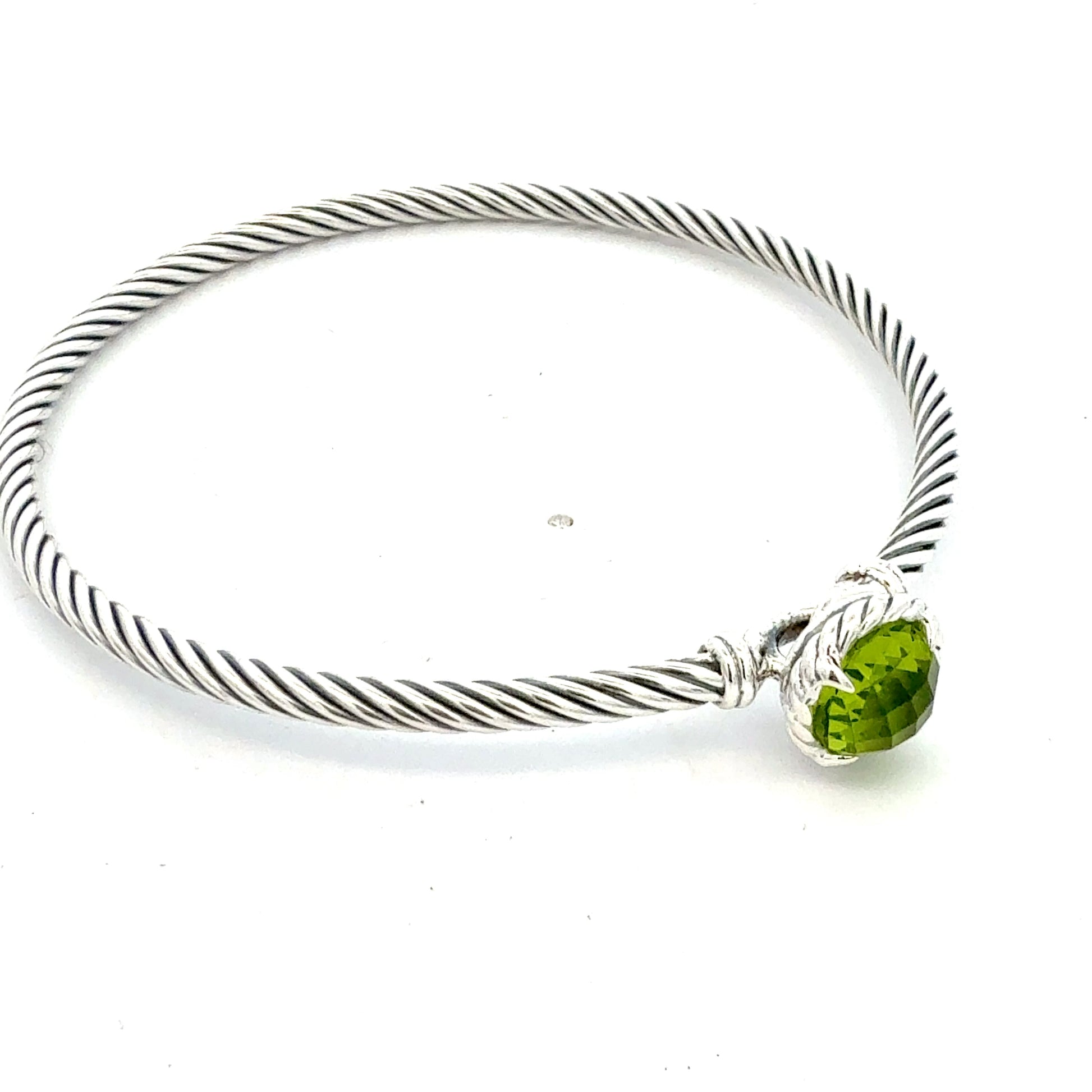 Authentic David Yurman Peridot Cuff Bangle Size 7.5" Sterling Silver 3 mm Estate DY794