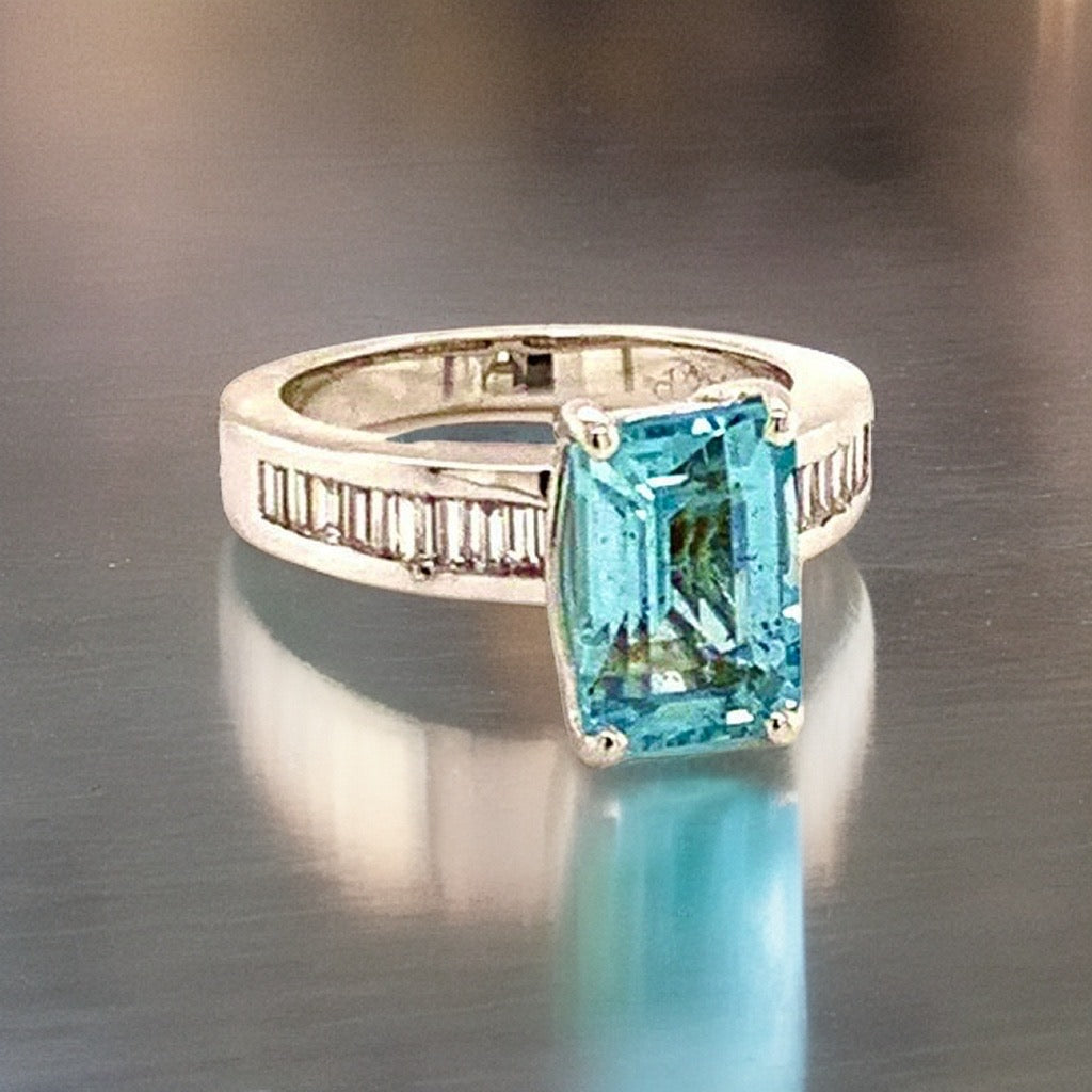 Natural Finely Faceted Quality Aquamarine Diamond Ring 3.30TCW 14k Gold Women Certified $4,200 911203