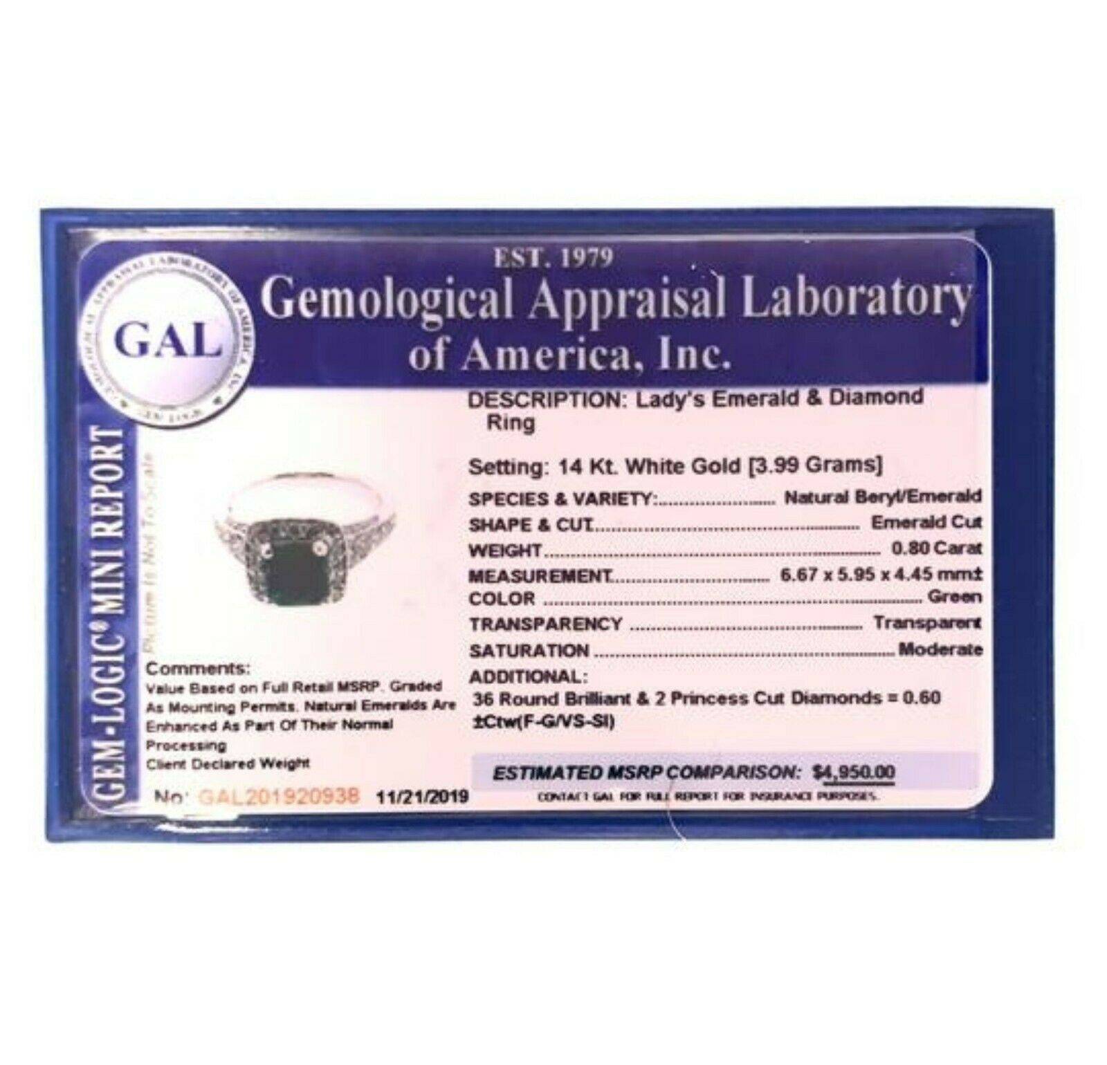 This Emerald ring has been Certified, Inspected, and Appraised by Gemological Appraisal Laboratory