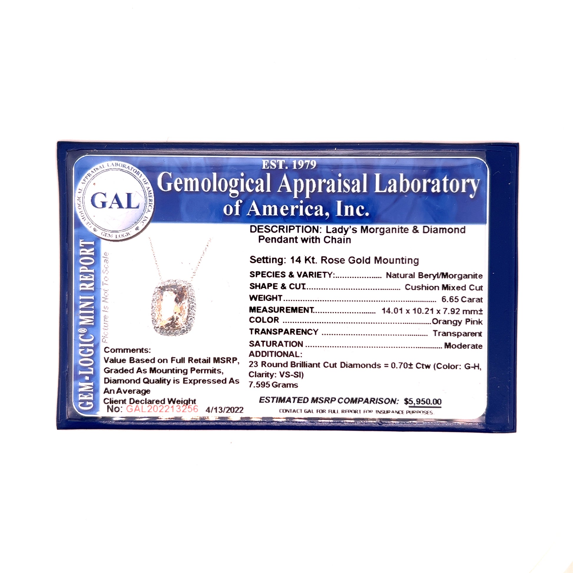 This Morganite Necklace has been Certified, Inspected, and Appraised by Gemological Appraisal Laboratory