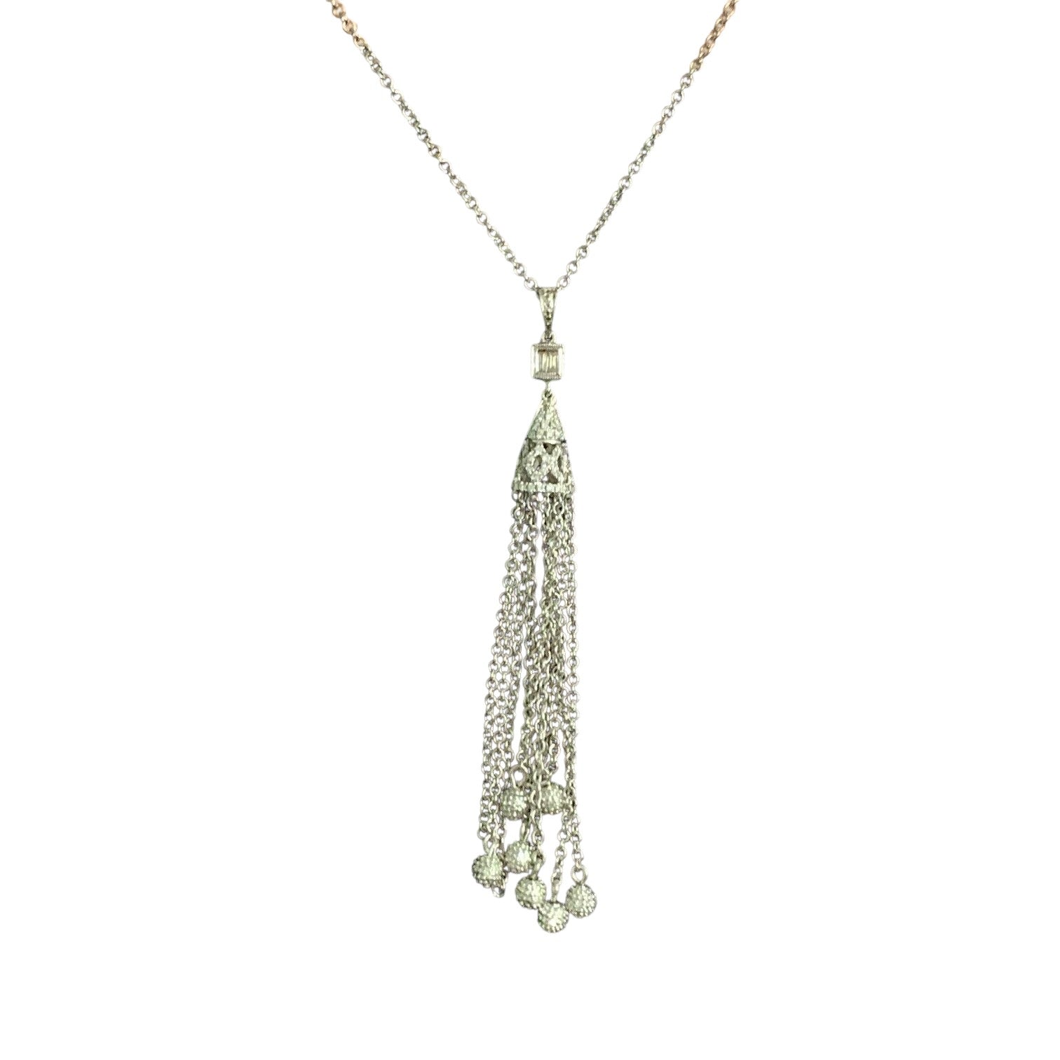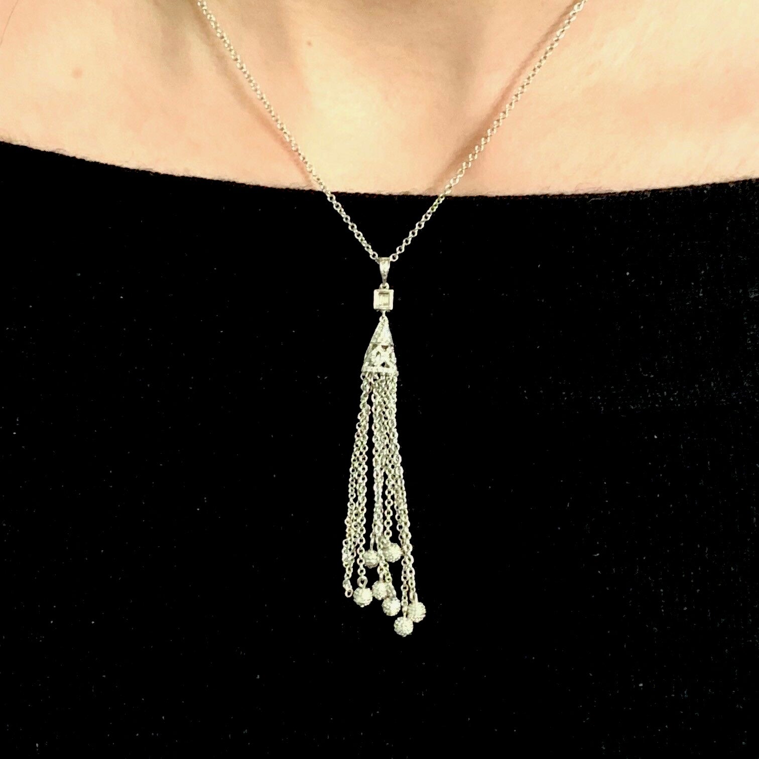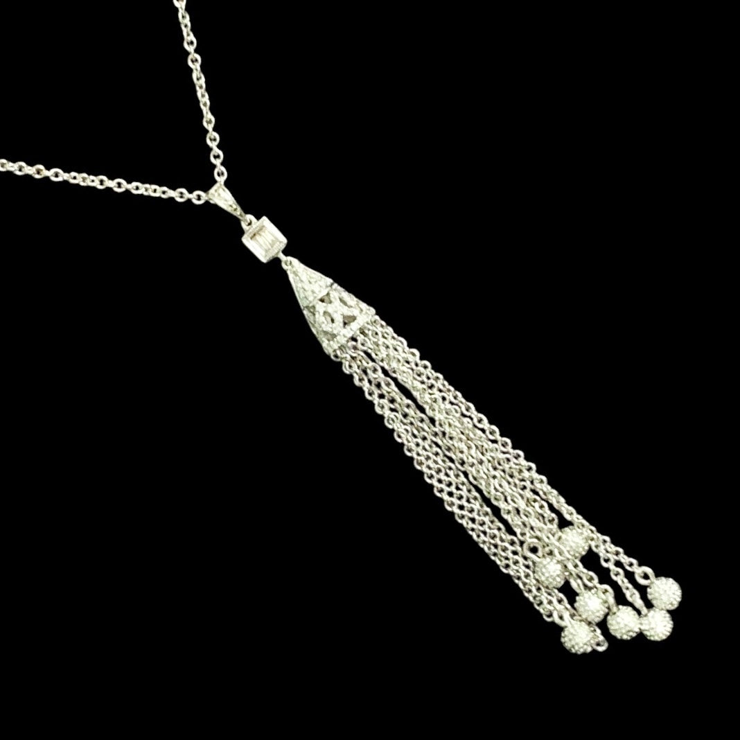 Natural Finely Faceted Quality Diamond Necklace 18k Gold Tassel Pendant 19" Women Certified $3,000 820700