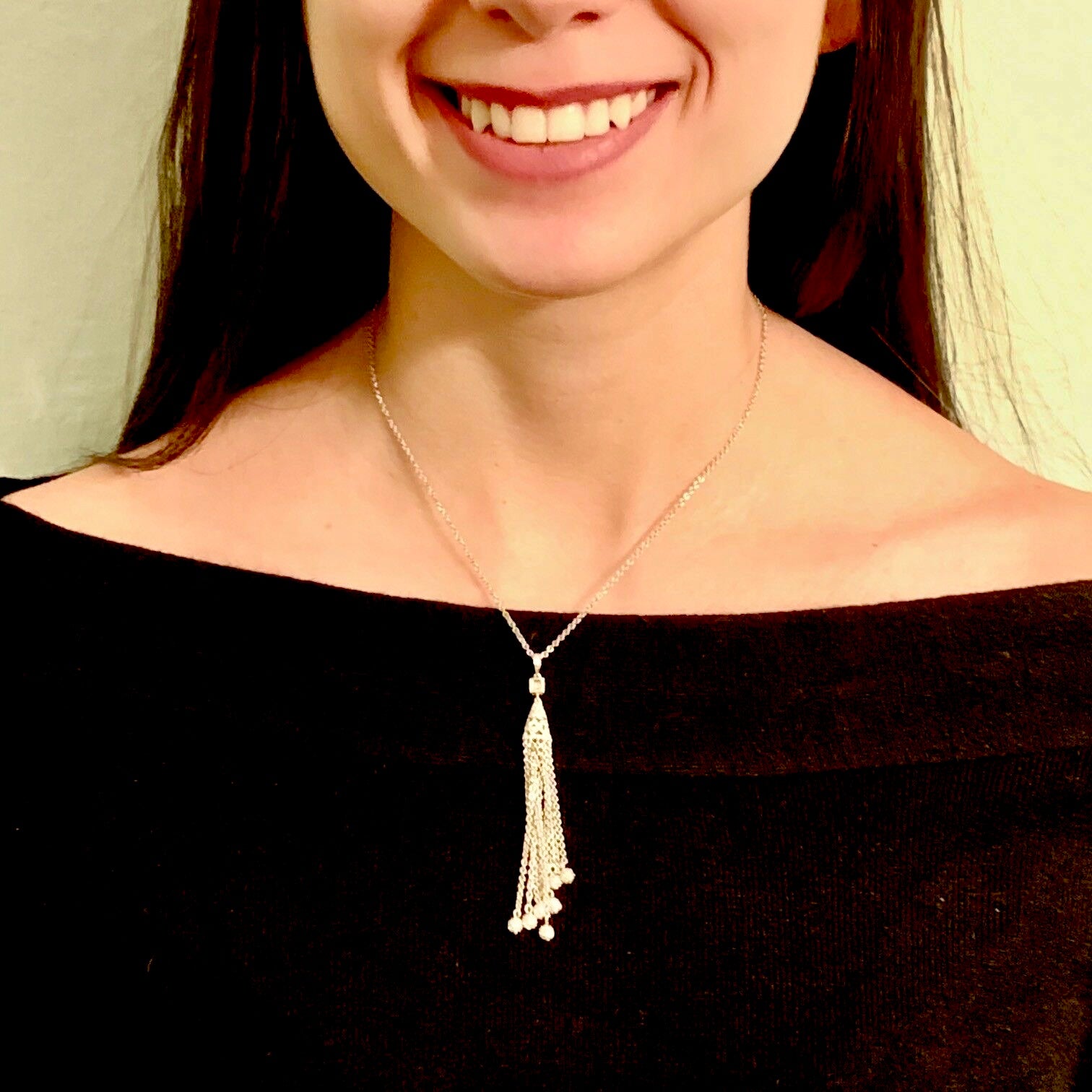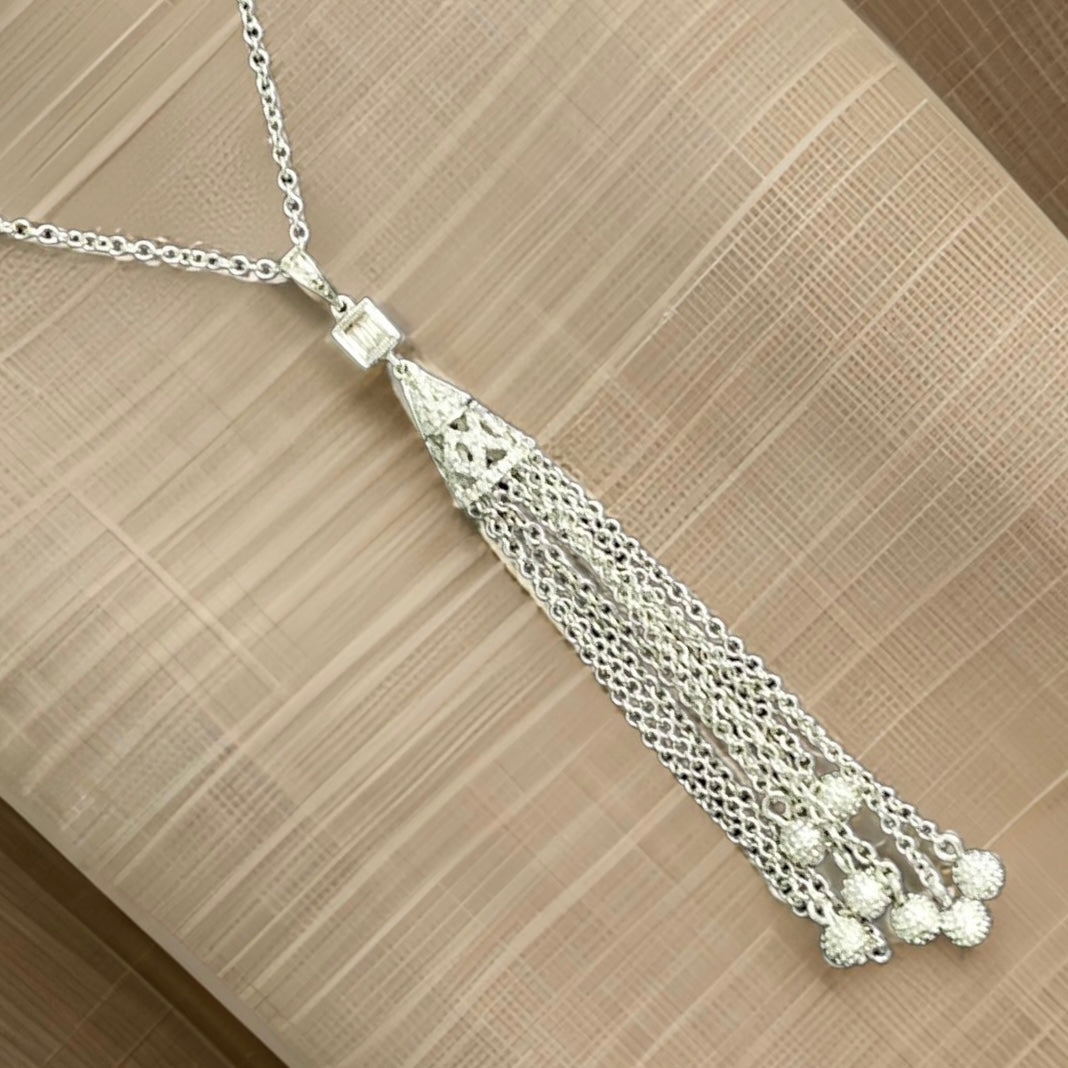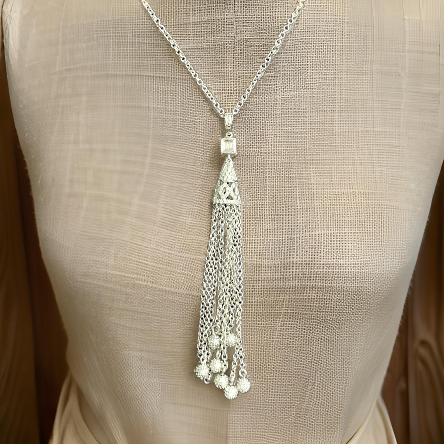 Natural Finely Faceted Quality Diamond Necklace 18k Gold Tassel Pendant 19" Women Certified $3,000 820700
