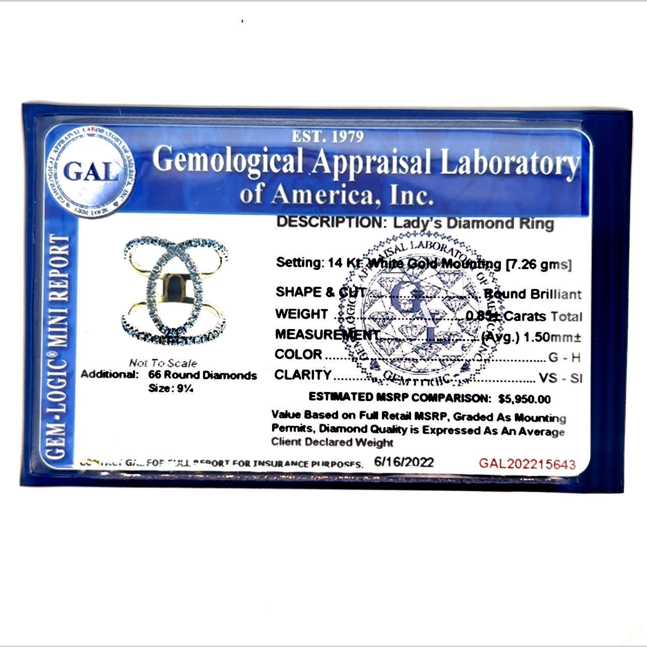 This Diamond ring has been Certified, Inspected, and Appraised by Gemological Appraisal Laboratory