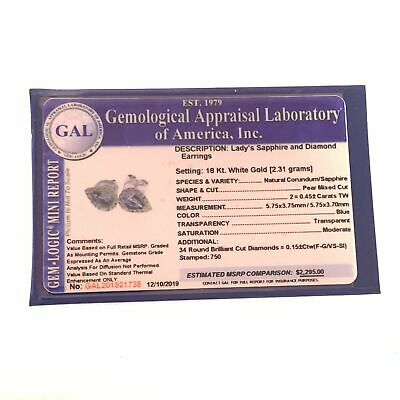 Natural Finely Faceted Quality Sapphire Diamond Stud Earrings 18k Gold 0.60 CTW Certified $2,295 921738