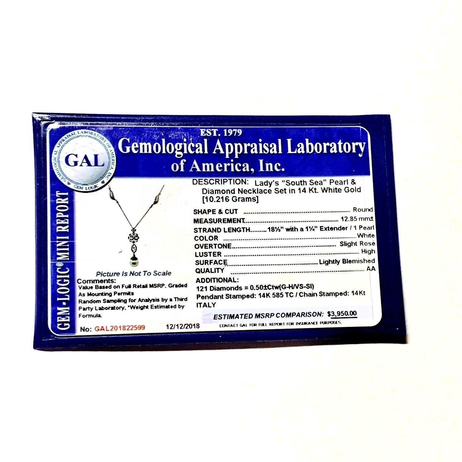 Fine Quality South Sea Pearl Diamond Necklace 14k Gold 12.85mm 19.75" Certified $3,950 822599