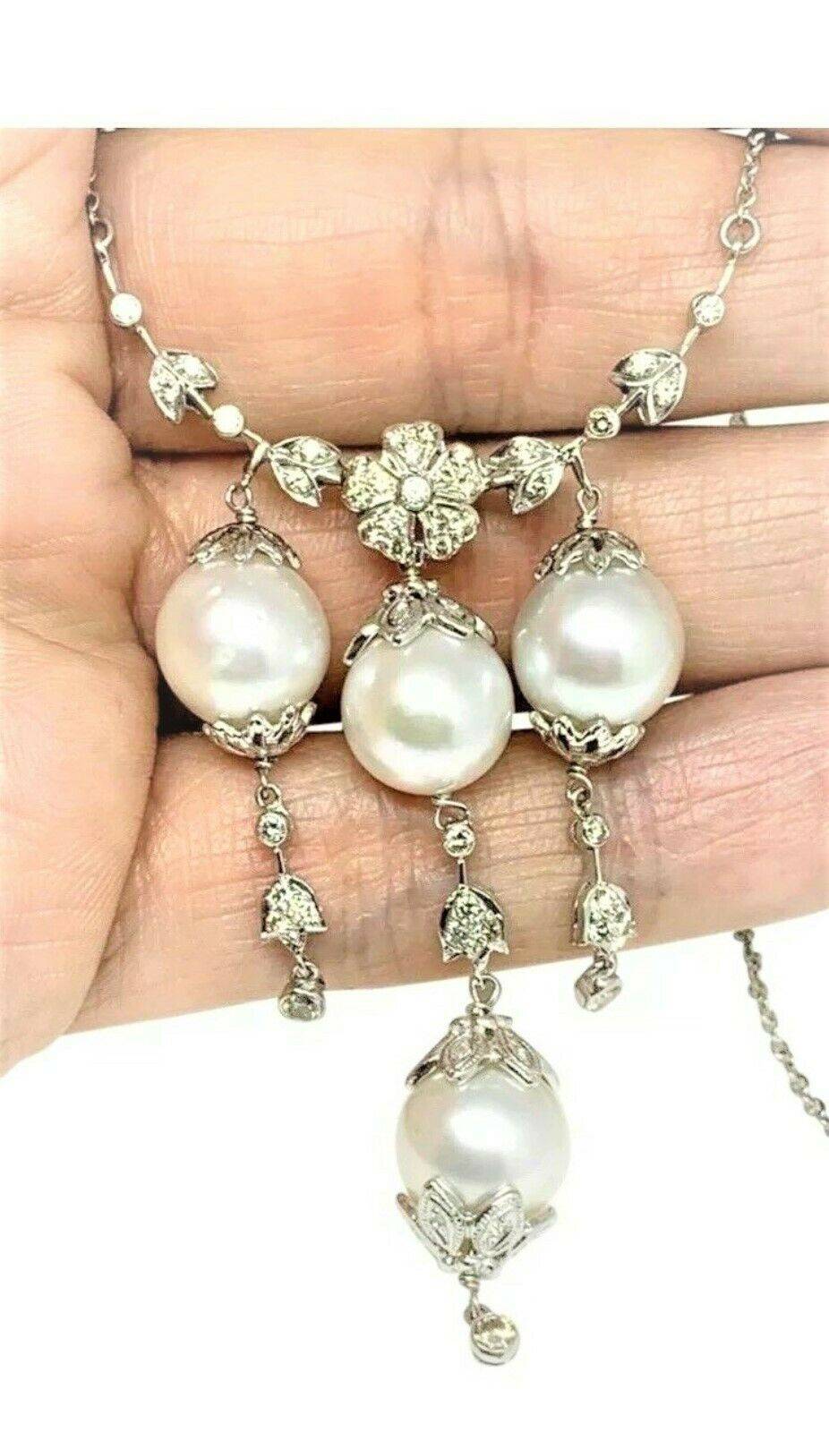Fine Quality South Sea Pearl and Diamond Necklace set in 18k Gold 11.45 mm 17.5" Certified $6,950 822583