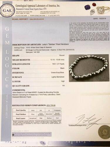This Tahitian pearl necklace has been Certified, Inspected, and Appraised by Gemological Appraisal Laboratory