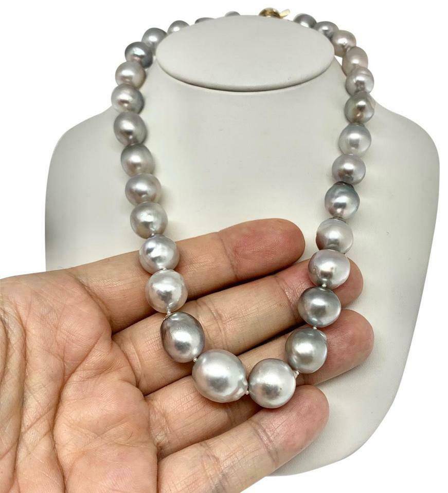 Fine Quality Hanadama Tahitian Pearl Necklace 14.3 mm Women 14k Gold Certified $9,750 917185